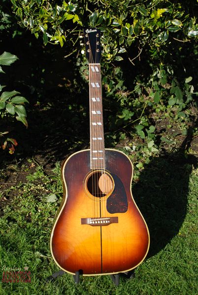 This is most likely one of the top two guitars I'll ever have owned.....the earliest and possibly first Southern Jumbo. What a priviledge it is to have this guitar back in stock. This is the earliest known Southern Jumbo from the prototype batch made in 1942 with the FON 8074H-10. John Thomas wrote about this batch of S.J.'s in his Kalamazoo Gals book and it has been documented by vintage Gibson expert Willi Henkes and Andre Duchossoir. This is currently the first known example in Gibson's history of making the SJ, which has been in production continually for 77 years.