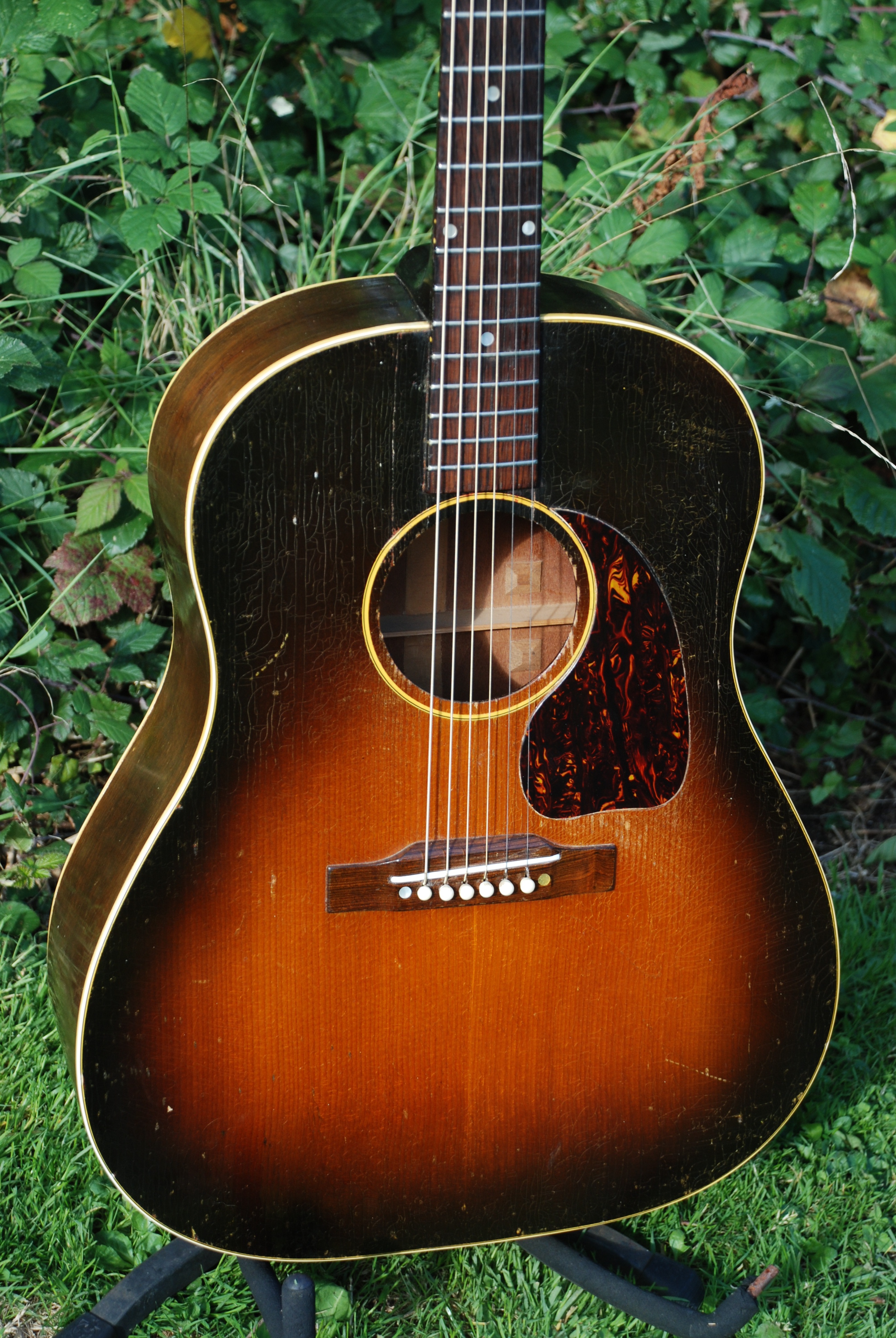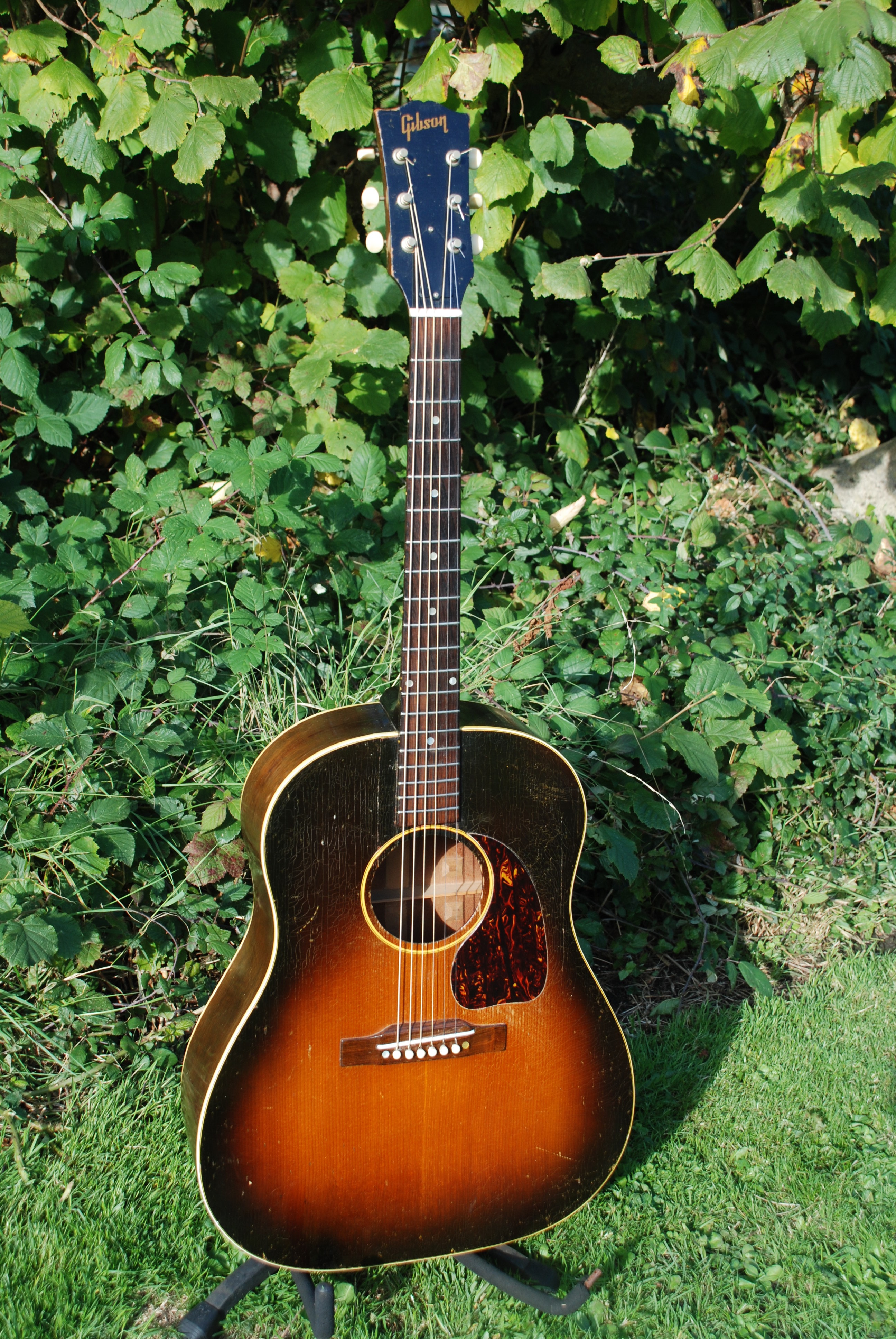 The workhorse of the Gibson line and this one is a corker. In lovely, all original condition with a bit of playwear and a fat, woody voice that is classic for this early period just after the war. None of these are turning up like they used to and so this is a real opportunity to acquire the year and model in superb condition. Recently neck set by Gerald with the magical combinatoin of mahogany and spruce and that lovely painted plank......nobody did this better than Gibson !!!