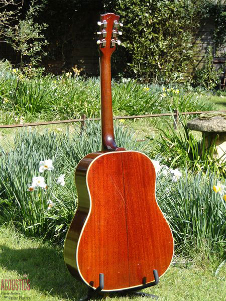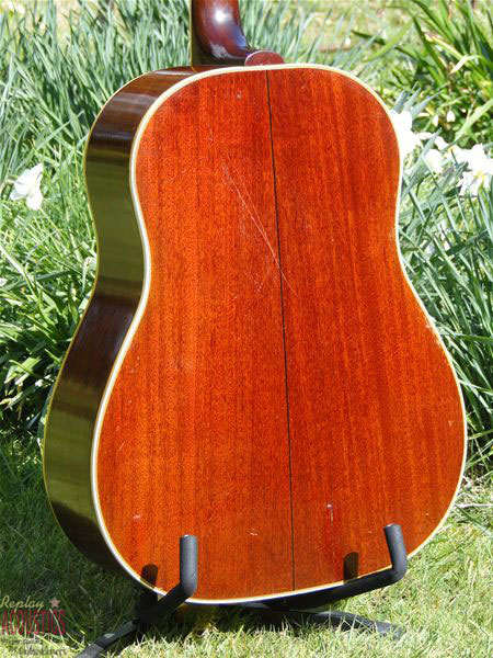 The natural version of the venerable Southern Jumbo and produced in approx. half the number as the SJ, the Country Western SJN is truly the classic slope shoulder dreadnought. Twin parallellogram fingerboard, individual Kluson tuners and a finely grained spruce top combine to create the ultimate image of the acoustic guitar. They have great projection and that lovely mahogany decay, eliminating unwanted overtones and giving the C.W. a crisp, lively presence. Well balanced and voiced to be crisp and clear, this example has a great presence with a full range of volume and projection. In all original condition with a ruddy, taffy coloured spruce top and mahogany rims and back. No visible serial number.... most likely faded.. One 3" back crack down low on the bottom bout is all need mentioning......lovely playability and great visuals.