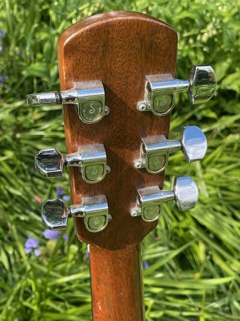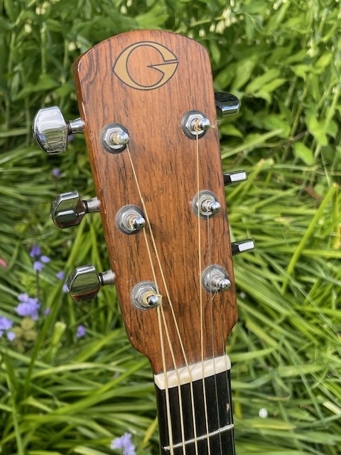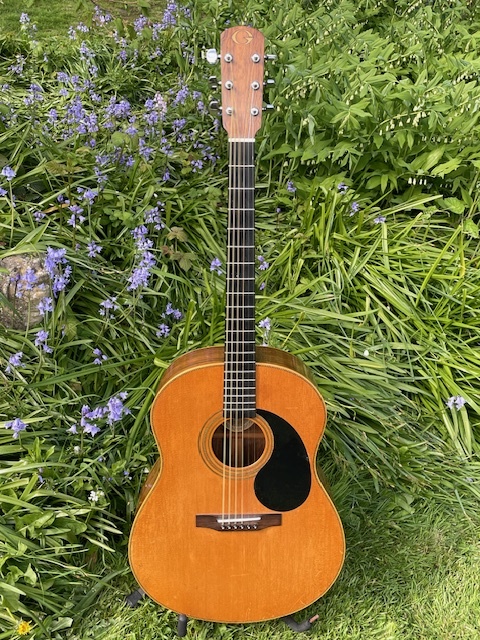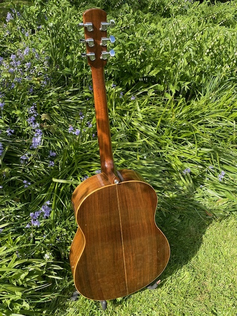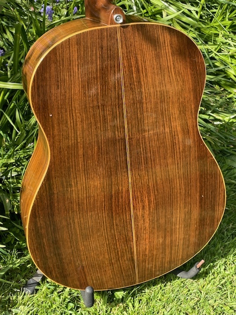 Michael Gurian brought his guitars to market in response to the other instruments on the market during the late 60's to early 70's, competing with the dip in quality at Martin and Gibson. Not unlike Mossman, his instruments are unique in their voice and feel and represent the 70's alternative acoustic guitar for those interested. Rosewood rims and back that I think might be brazilian, with a good sitka spruce top and beautifully bound with rope twist inlays. It has a tremendous voice......loud and responsive and this particular example was part of the stable of John Renbourn's, making it a unique thing in the English folk world.