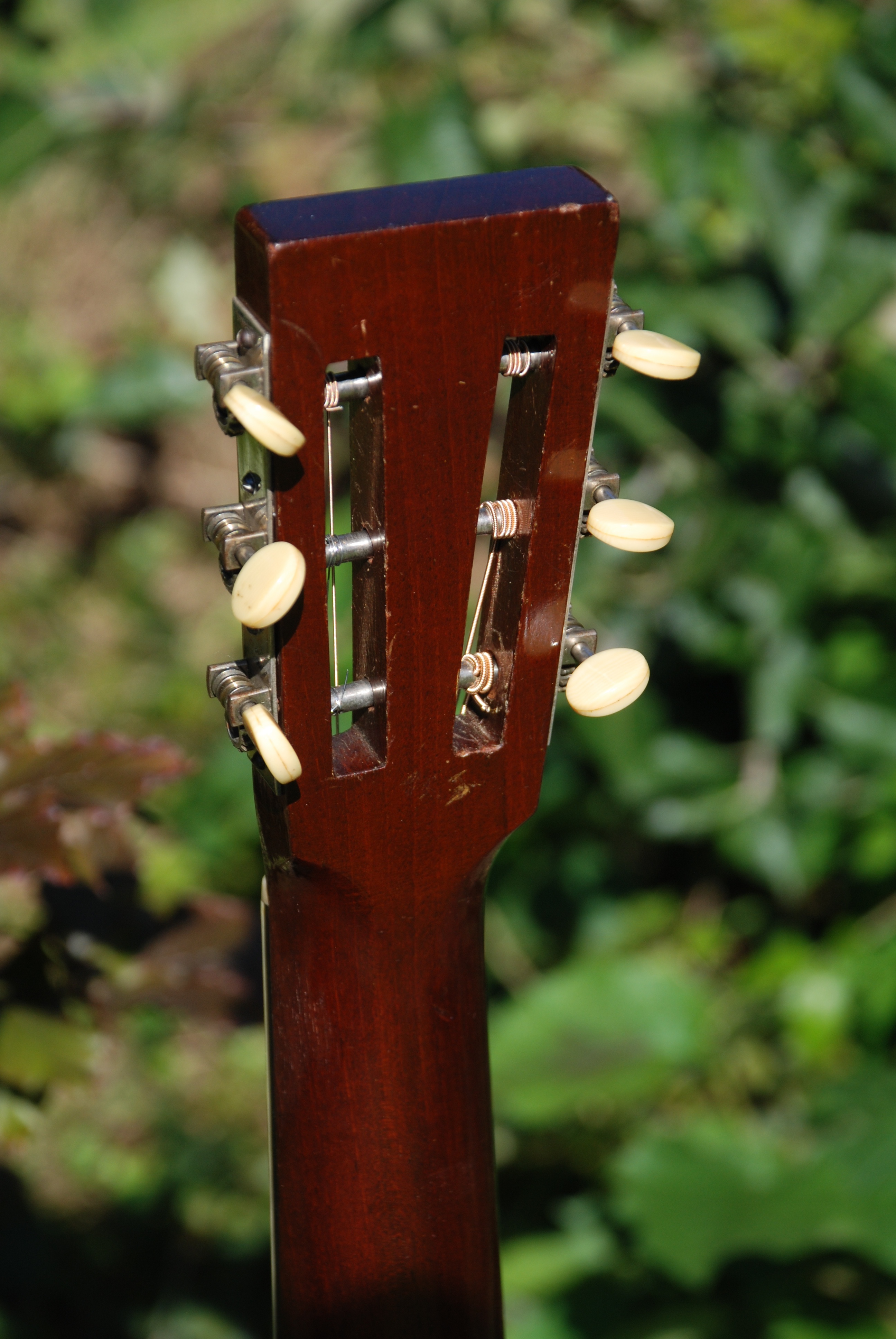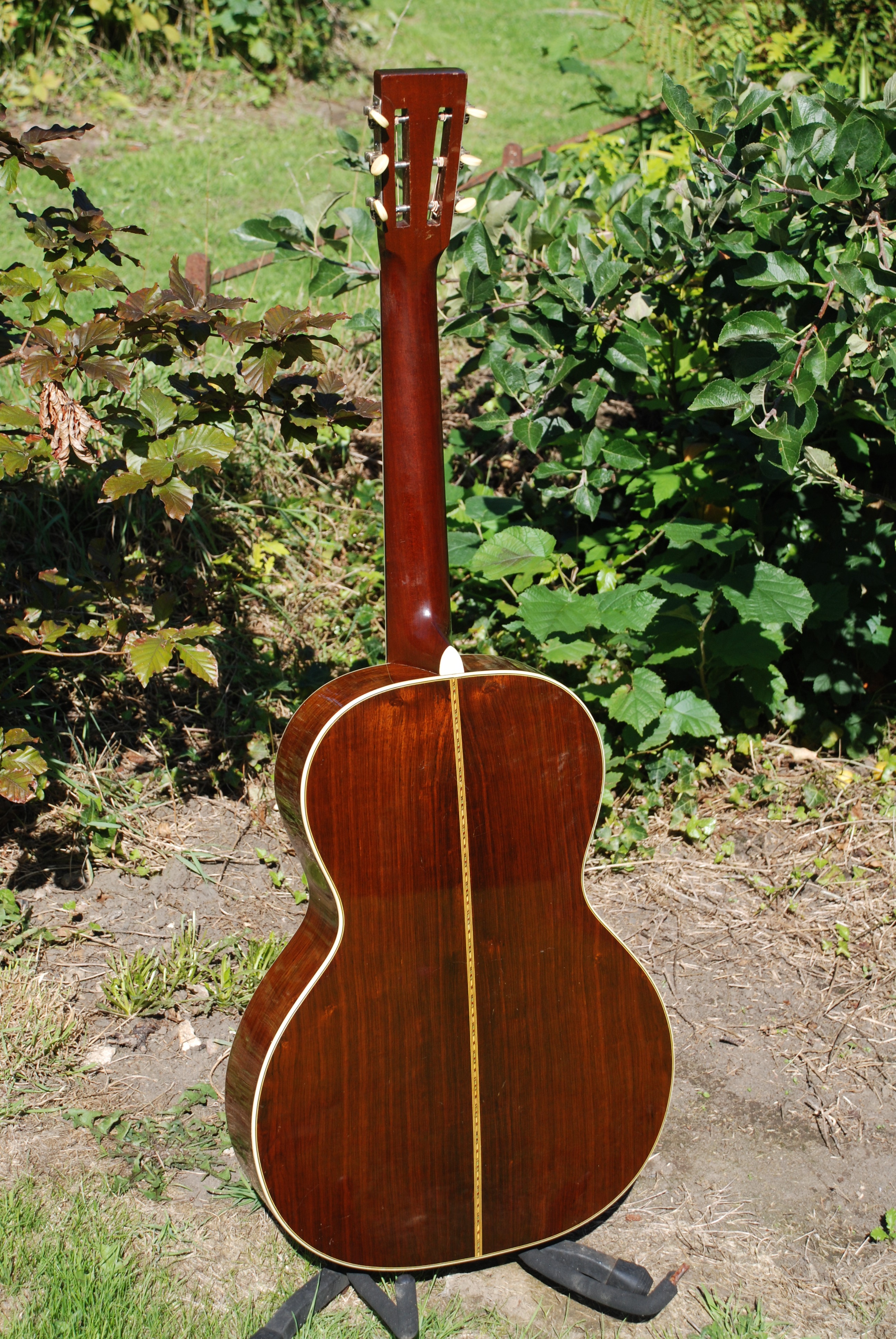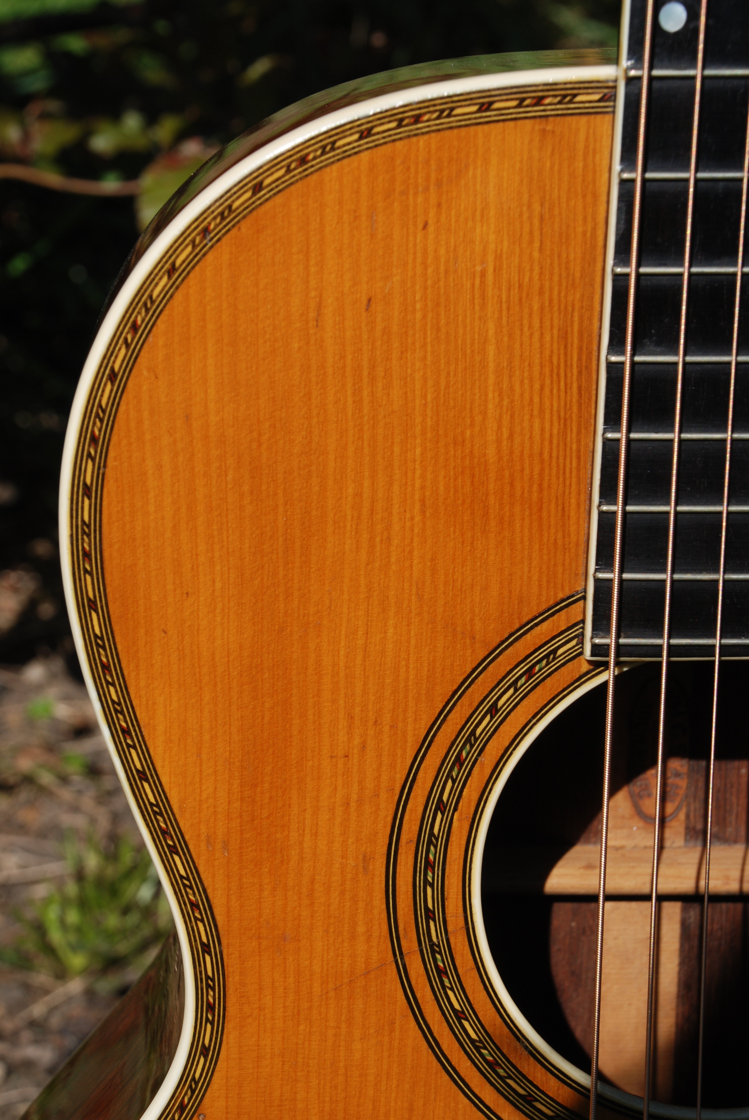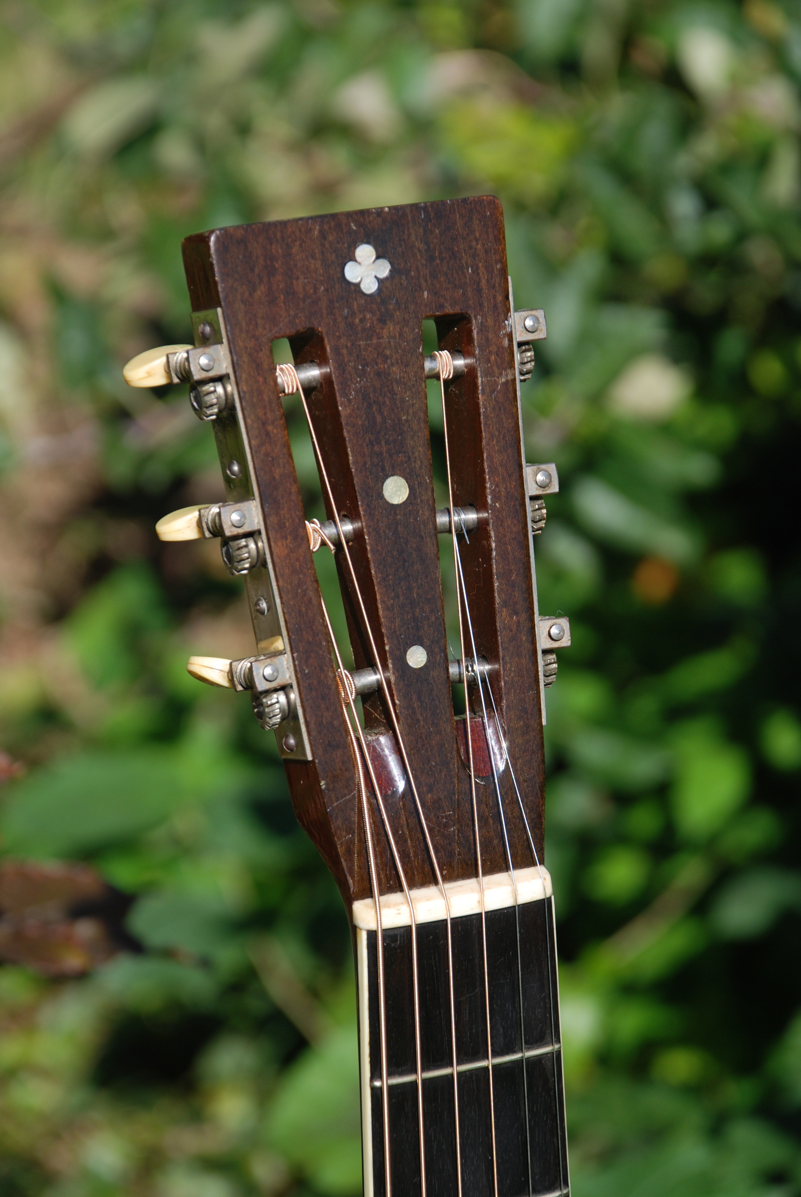 If there is any group of instruments that, in my humble opinion, are underrated and undervalued, it's this group right here. The Larson Bros. And if there is a guitar that can honestly compete with the best that Martin has to offer in the early, fingerpicking style than it's the Larson guitars. I've owned this before and gladly, it's back. I had forgotten just how sublime this instrument is. All original with laminated X bracing having a rosewood core and the thinnest body that I've known. Beautiful brazilian rosewood back and sides of the color we find in the 30's and early 40's Martin instruments with that beautiful brick red patination. Adirondack spruce top with checkered bindings and soundhole surround, ebgony bridge with cross pearl inlays and decorative inlays in the ebony board and headstock. Slot head, obviously. Sound? Come play it !!!!