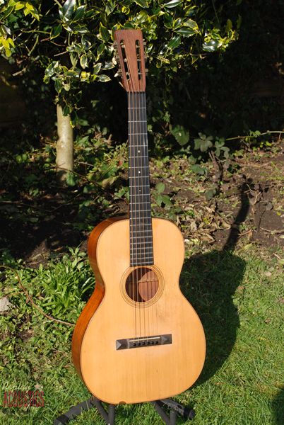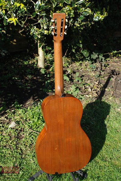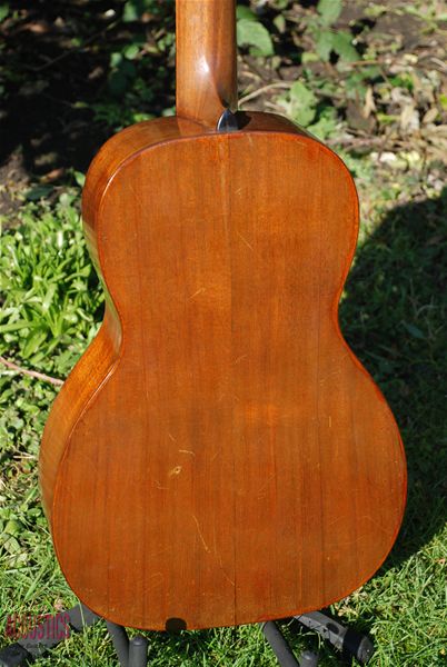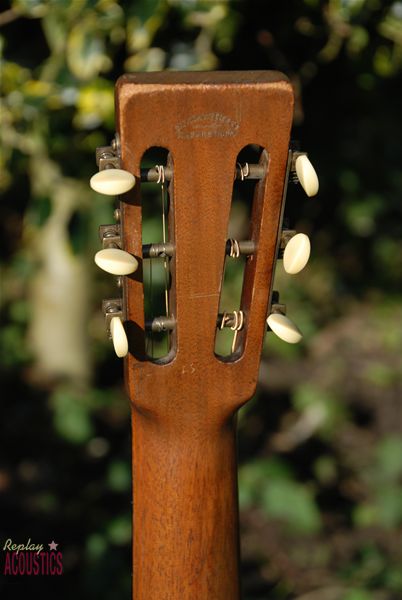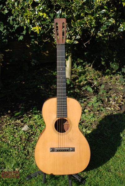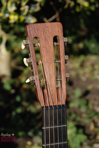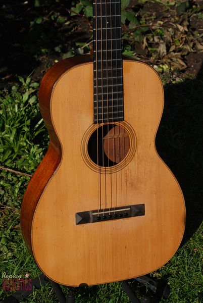 1926 C.F. Martin 0-18........just on the edge of Martins' acknowledged switch to steel string guitars and this is one of those. Officially announced in 1923, this model was made primarily for steel strings with gut string examples made as custom orders. Having been played a lot with evidence of that, this little 0 model is a real charmer, being one of 900 built that year and it's been in constant production since it's inception. Mahogany rims and back with an Adirondack top and mahogany neck, it is the true beginning of what we call the "Golden Era" of Martin guitars. The finish is original on the top and back with remnants of it on the sides It is structurally completely intact. Ebony board and bridge complete this picture, giving this guitar that magical combination........a true opportunity to own an early Martin steel strung guitar.
