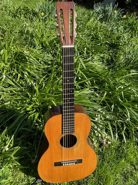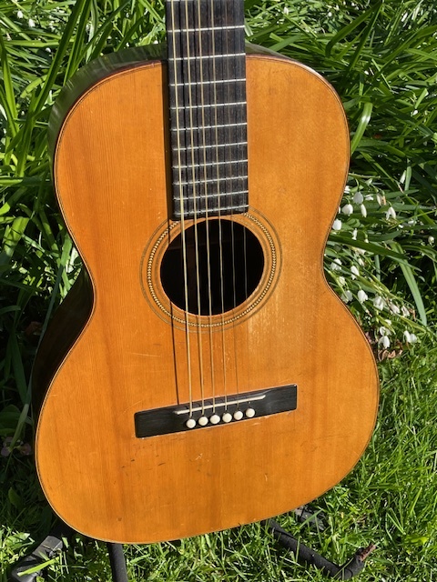 Another 1926 Martin in excellent condition with that lovely brown Brazilian that we see at this time. Light and resonant with a lovely playing action and as sweet as a guitar can be. This era sees ebony on the board in place of rosewood which came along after the war on the 21 series so it really isn't much different from the 0-28 other than rosewood bindings.