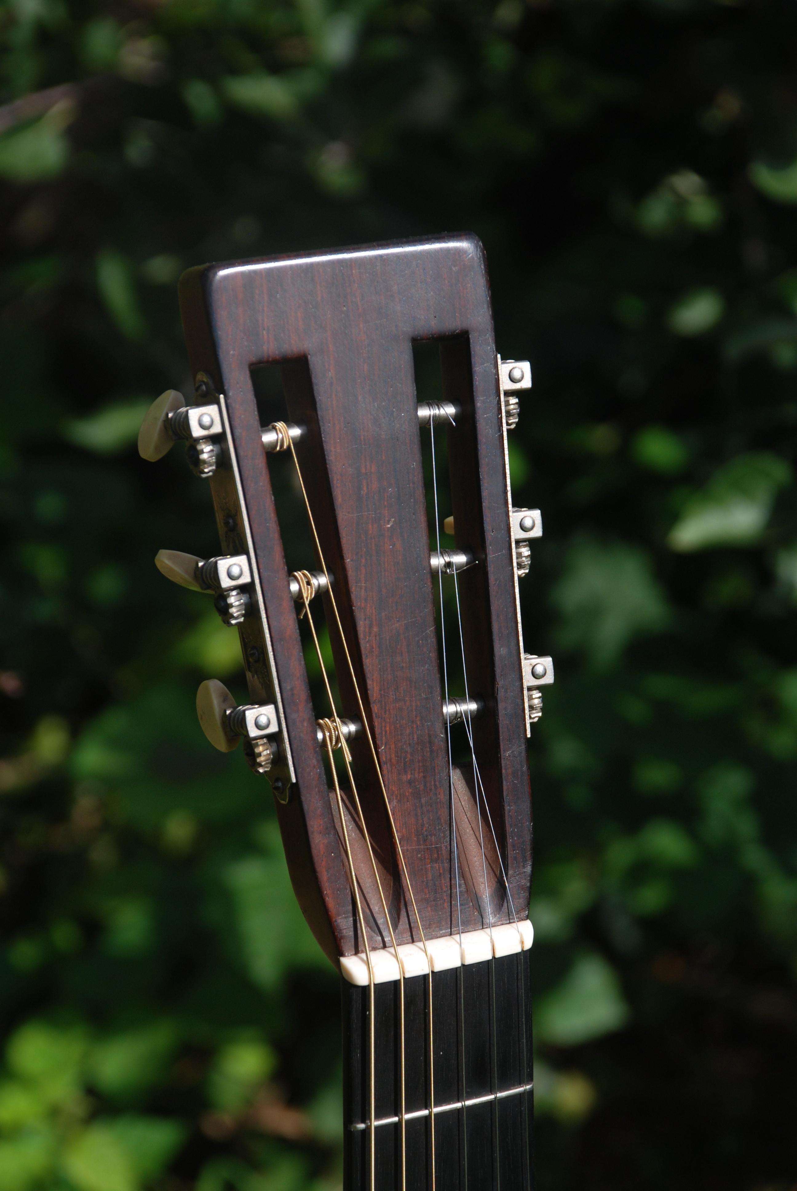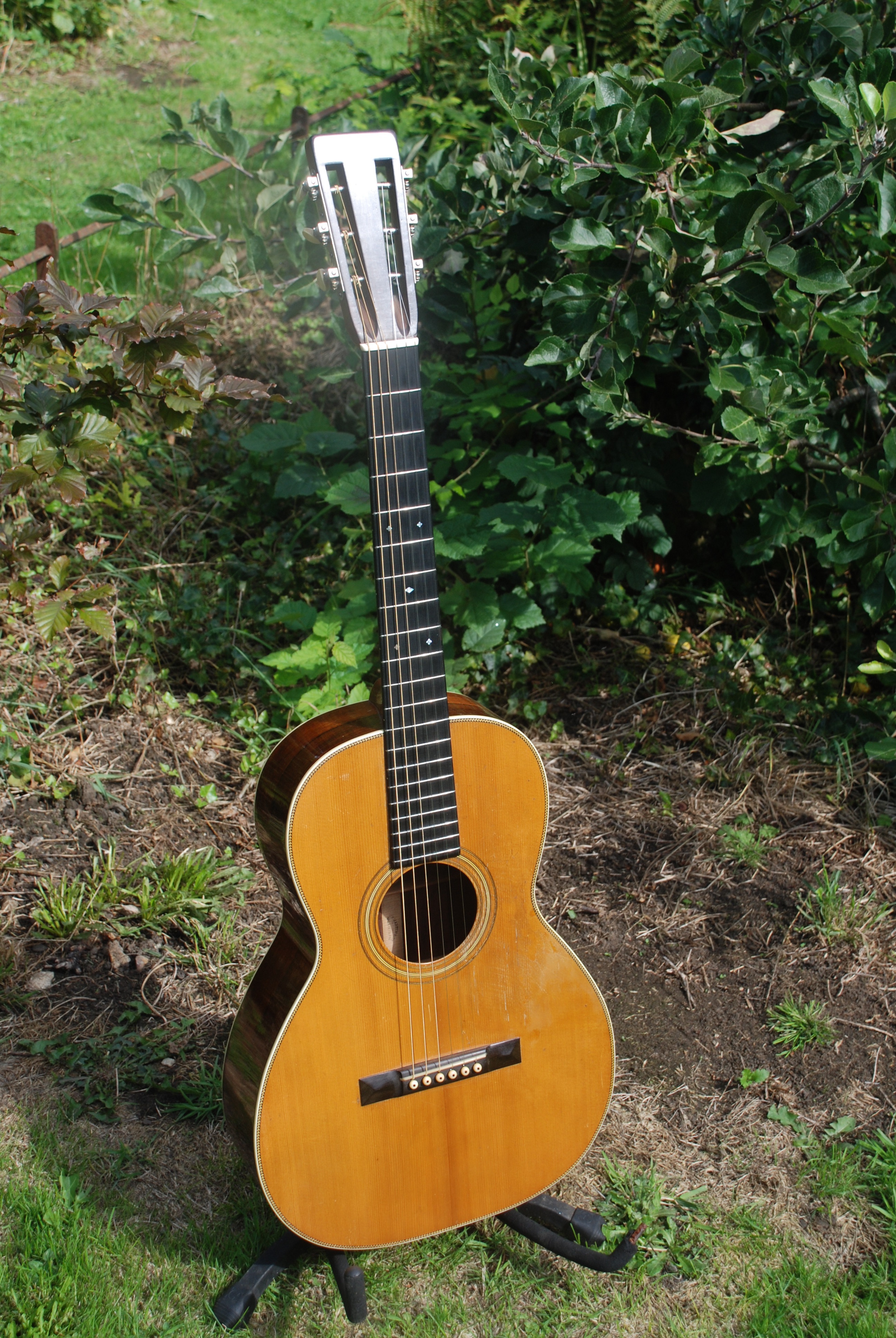 A very special and rare early Martin brazilian rosewood "O" sized gem. In all original condition with a superb patination and beautifully grained tonewoods. Ultra responsive with all the attribues that we come to expect from these very rare and early Martins. Sustain, harmonics, color, response.......all the buzz words apply. This is a period at Martin where guitars were sent out with steel or nylon strings without regard to the bracing in them, which carried on from about 1922 until Martin officially went to a "steel string" designation for each guitar. So one has to determine what each guitar can handle and I've found comprehensively that these early pre-1926 Martins can all handle extra light steel strings, which is what is on this guitar. Martin itself authorized to me personally that this was actually better and had less pull than a set of nylon, and it makes all of these older Martins very relevant for musicians today. It has a brilliant and fat voice that is sonorous and powerful......a fingerpickers dream. They just don't come along any more like they used to. and the priviledge is simply that it's here now and for sale. Amazing.