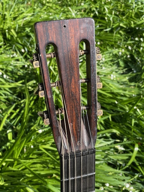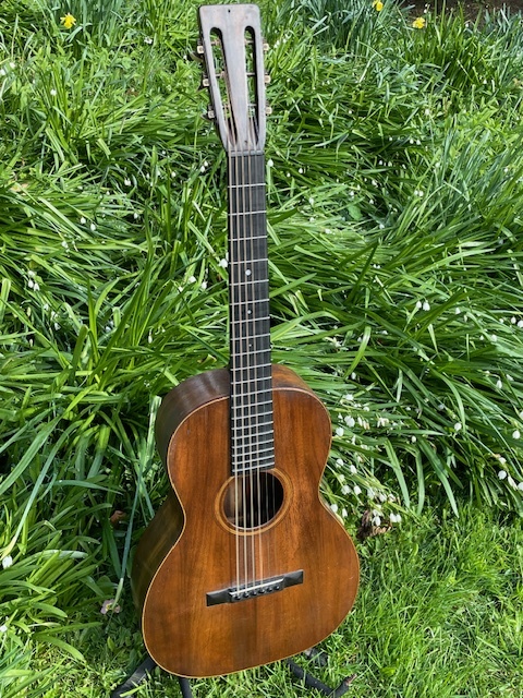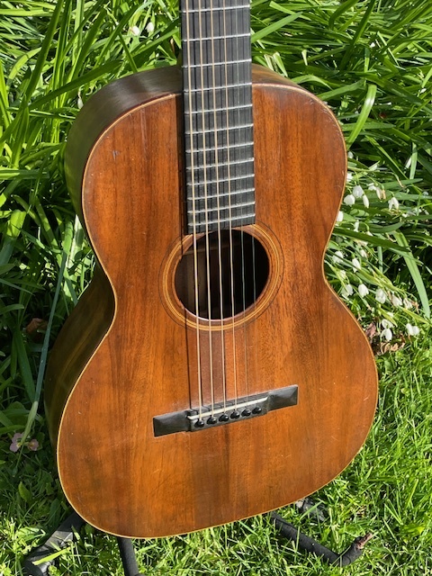 This is an extremely rare Hawaiian influenced Koa 0-18. It's the only pre-1930 example of this model that I've owned and it's just sublime. All koa body with a mahogany neck and a thin, almost invisible original finish. 475 were made this year and as with all pre-war Martins, they are built with the same quality of every model of it's era, meaning forward shifted scalloped bracing and steel T bar truss rod. This all combines to create and exceptionally musical orchestra sized instrument, of a quality never rivaled by other producers. The harmonics that this generates are exceptional with long sustain and a hauntingly beautiful sweetness. An amazing fingerpickers dream !!!