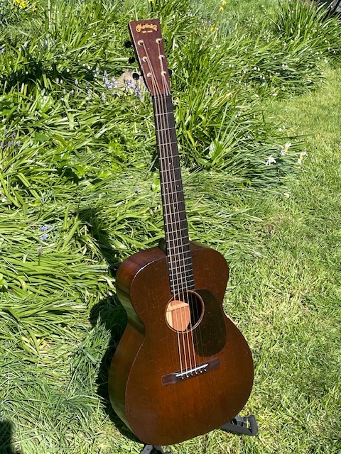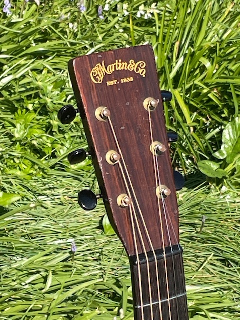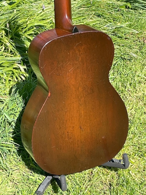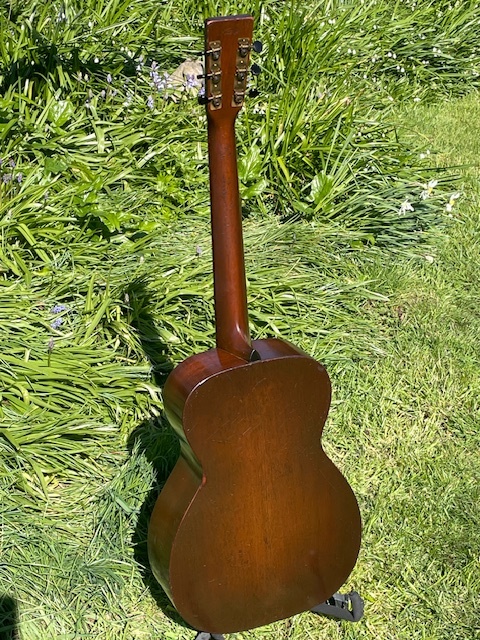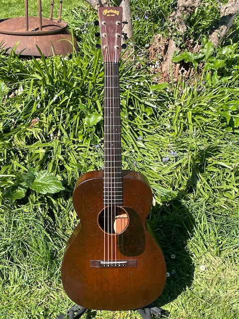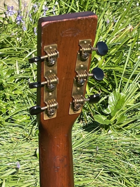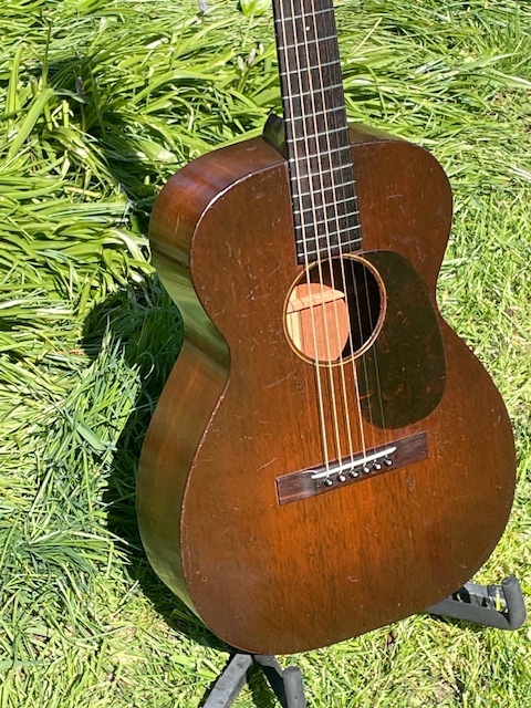 What a beautiful machine this is. An early 30's mahogany topped 0-17 in all original condition with the most gorgeous patination, playwear and finish. I've never had one like this and it seems to have a slight burst in the finish, which I also have never seen before. The beauty of these pre-war all mahogany guitars is that they were built to the same specs as all their spruce topped guitars so the sound quality that they produce is just beautiful. Thin whispy fully scalloped bracing, small maple bridge plate and a really gorgeous radius to the neck. Just the right amount of wood to give you the perfect playing feel. The finish is dark and transparent showing all the grain and color......the logo has turned golden and it's just .....well, the best of the best.