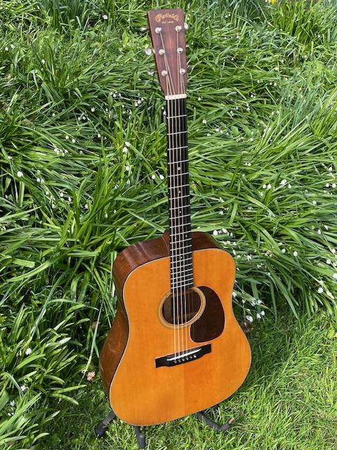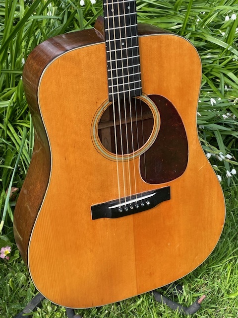 Lester Flatt of Flatt and Scruggs and Elvis both used a 1942 D-18 and to play it is to understand why. This is really the first year for the "war era" Martins from an American perspective, which means ebony rods in the neck although we still have grommets for the tuner pegs. Fully scalloped bracing rearward shifted and an Adirondack or Red Spruce top. They are simple machines but make the most beguiling music these days. Warm and thumpy with great presence, endless sustain and bags of harmonics. At this period rearward, brazilian and mahogany as tone woods begin to lose their unique characteristics and become more like each other than not. 326 made this year, less than one a day. The greatest instruments ever built and this is one of them. Simply beautiful.