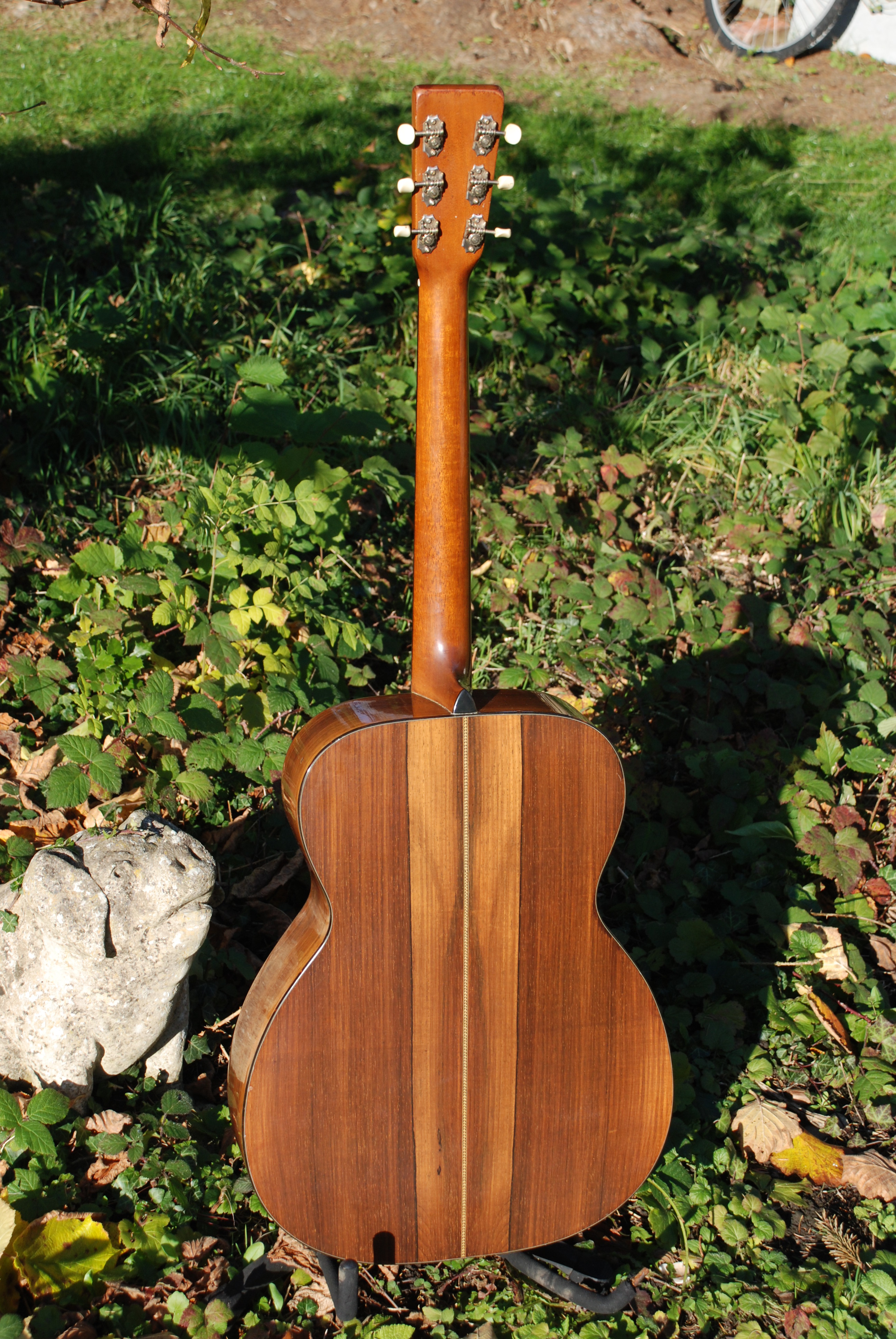 The T-bar truss rod transmits sound differently than the ebony truss rod, creating a more articulate and very powerful sound that is heard in the years before and after the war. Bags of harmonic resonance and projection, it's almost slightly haunting in its sensitivities. Lighter to the hand as well. This example has been refinished a long time ago, which along with the added adjustable truss rod, explains the price. Without that,it would be twice what is being asked today. So how do we look at such a machine. In my book, it is 10 times better than a modern custom made Brazilian Martin 000-21, which would probably broach £15,000. So we have priced this considerably less than a modern example of the same spec but you get a war era Martin guitar that sounds brilliant. That's the story.