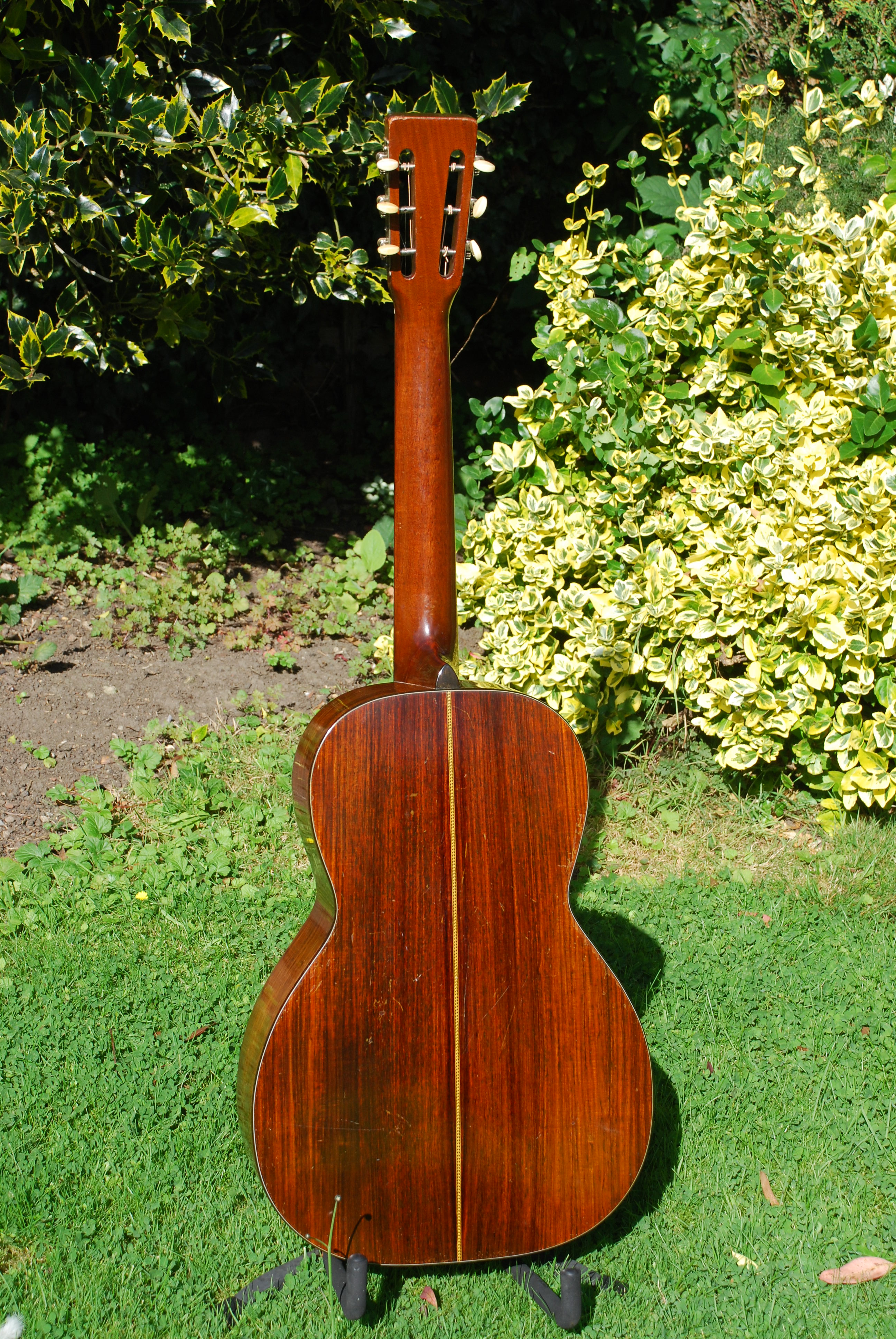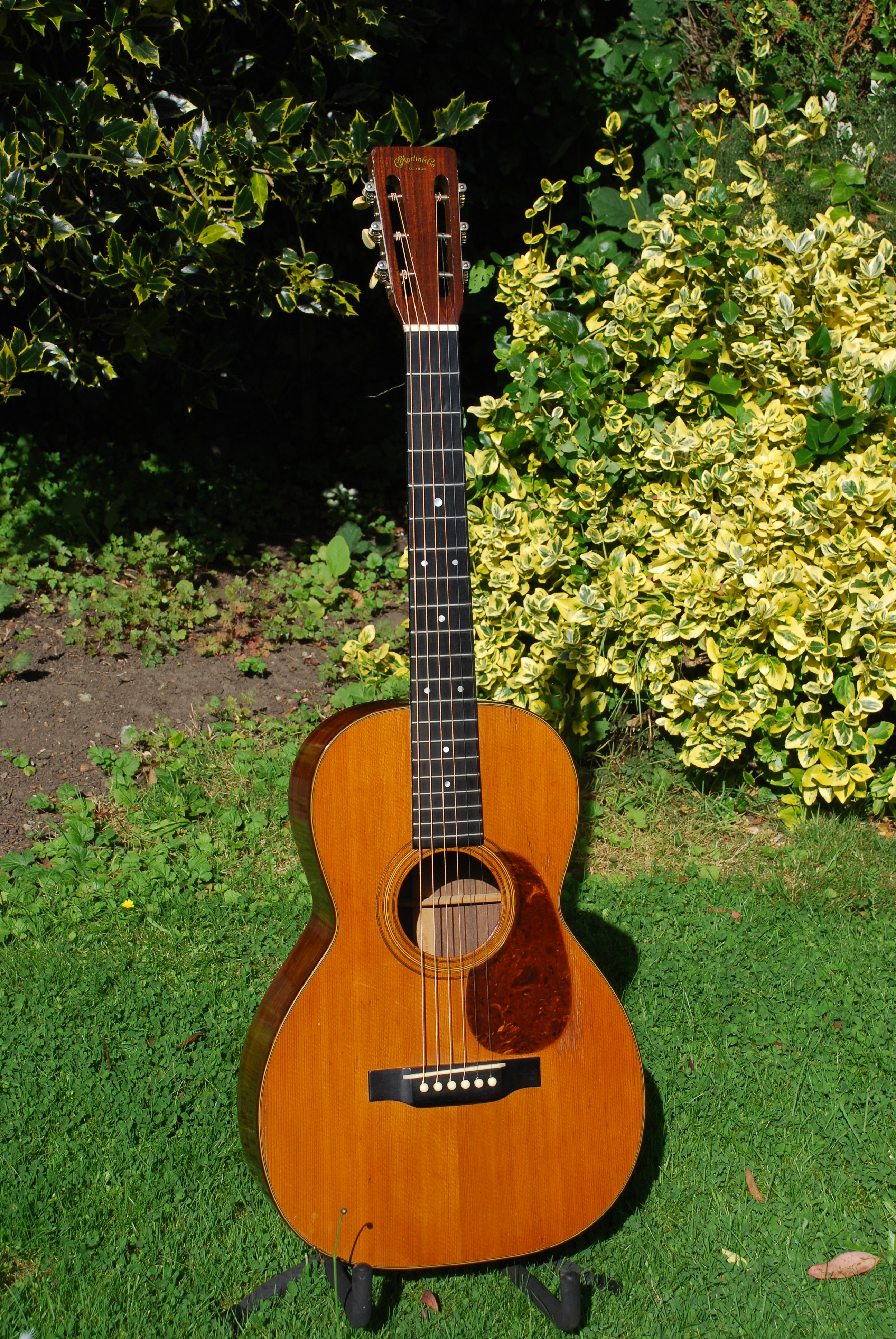 Only 30 of these beauties were made in this year and 2 years later, they were discontinued. More importantly this is the last year for ebony board and bridge on the 0-21, as it was on the D-18, so they are very special instruments indeed. Long taper bracing with 12 frets, ebony mounts and all original......and second time in the house. I just love this guitar. It is so powerful and fat with great note separation that almost all 12 frets have. but the combination of 12 fret, ebony and brazilian is a mind blower. These are so rare almost everyone hasn't ever seen one, including me until this one showed up about 6 years ago. One could not use enough complimentary words to do this guitar justice.