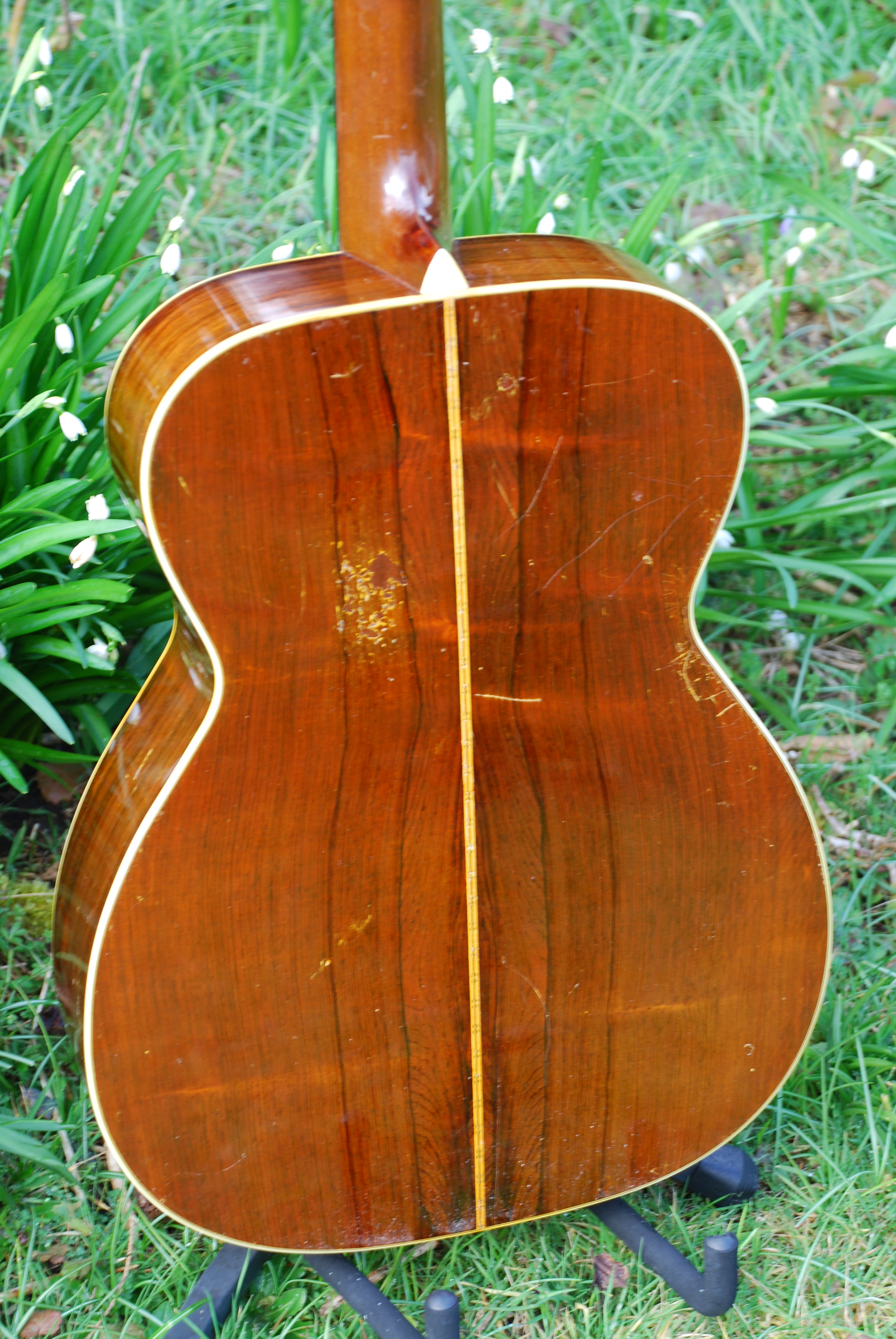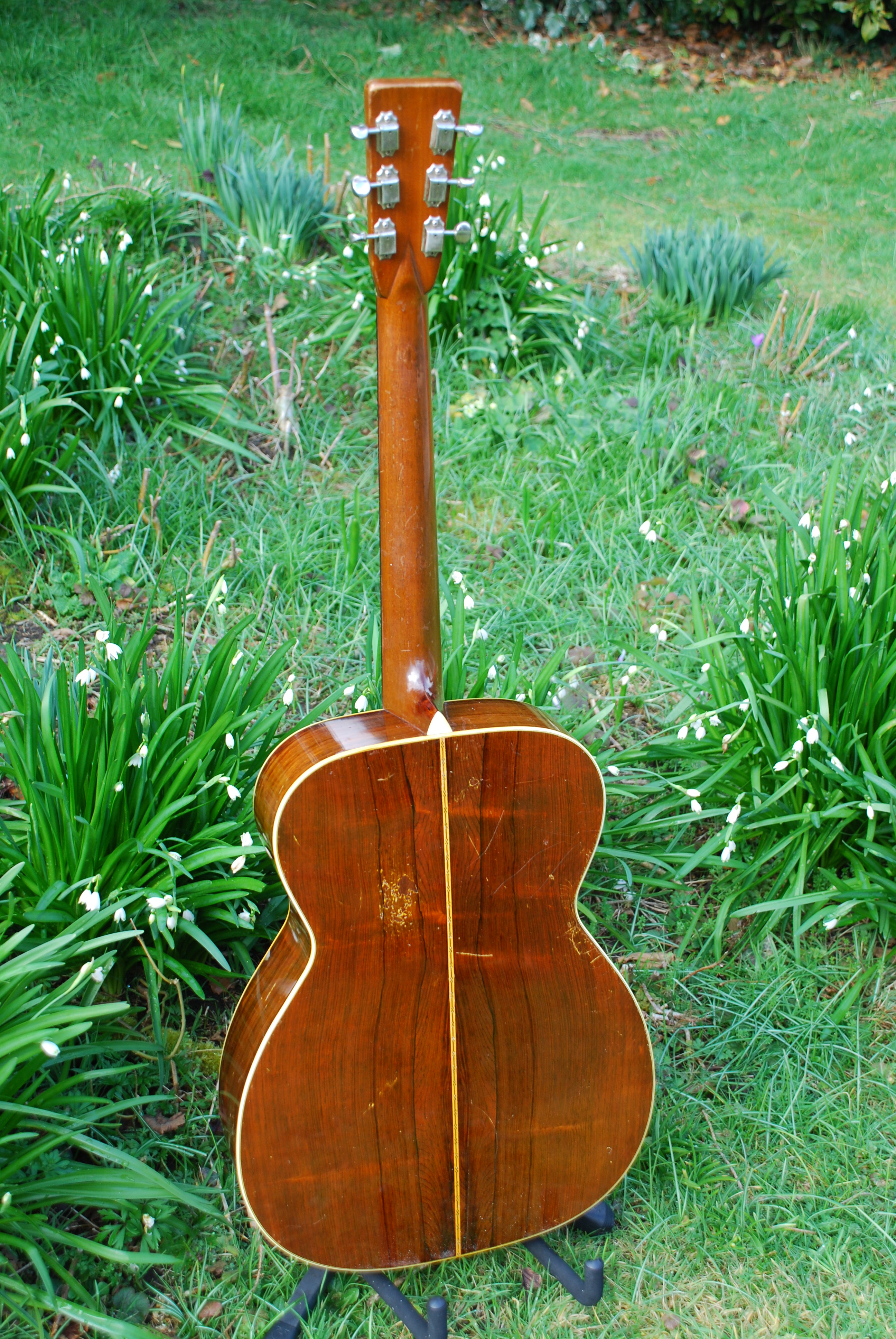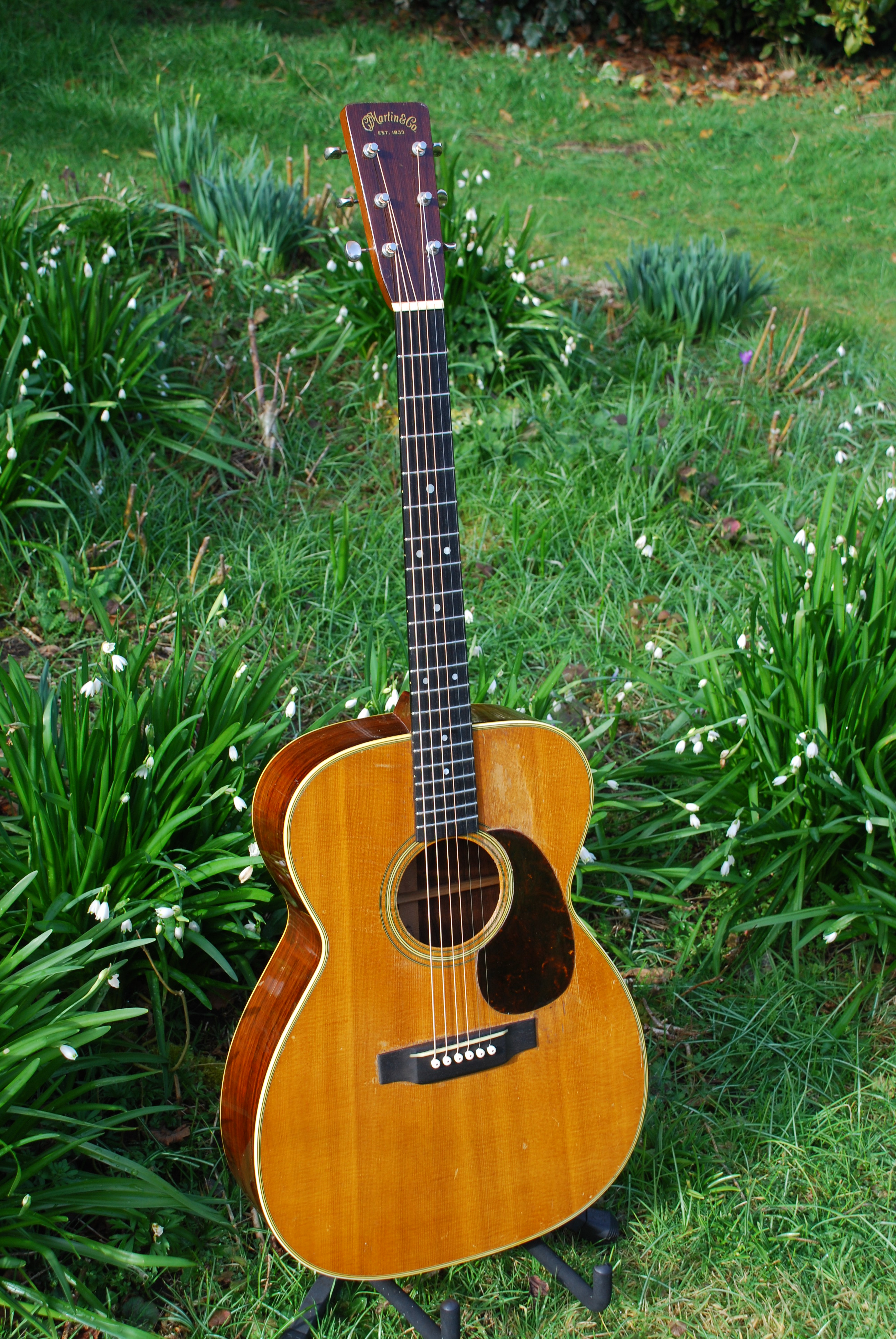 It's good to see this old gal back into stock again. A rare thing, finding a really clean 40's 000-28 in this country. This guitar is all original and is classic in it's voice and image. Long tapered bracing, which is a magnificent innovation that we only see just post-war and offers so much control while keeping the guitar very responsive and balanced. One doesn't need to talk too much about these early Martins as they always do what it says on the tin. Beautiful rosewood tonewoods and just the way one wants it to be.