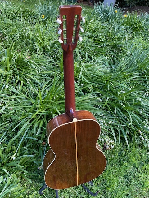 Today, it's difficult to know that the top was done. Almost 20 years since installation and we don't know how old the spruce was when it was installed. It's completely set in. The finish on the body of the guitar is original and the top blends with it beautifully. Very thin and supple, the top is a beautiful piece of Adirondack spruce and resonates as a period one would. The sound of this guitar is pre-war. To me, very little if anything has been lost to the top and it probably would actually have improved it, as the original top is thicker to accomodate the Hawaiian set up. The origiinal top accompanies the guitar and validates the bracing size and pattern.