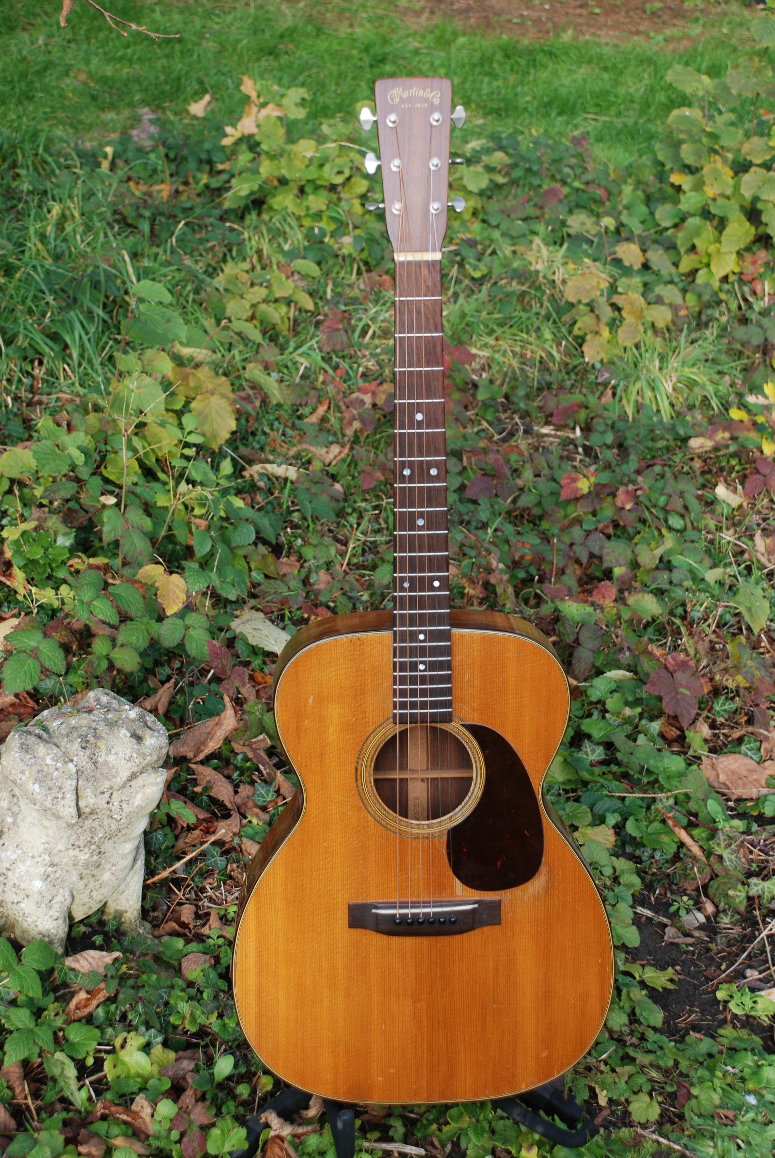 Nice example of the 000-21 from the early 50's. In lovely played condition with some wear here and there, all original and a true delight to play. Extremely expressive voice with a crisp response, woody but clear and powerful voice and a good set up from Uncle Dave doing his thing. Great Brazilian rosewood back and sides with some lovely graining. This model is such a workhorse all purpose guitar and I have never been able to get enough of them. Rosewood bindings and rosewood board and bridge, giving this that woody, more rounded sound than the ebony mounted 28 series. I do bang on about this series and have never changed my tune.