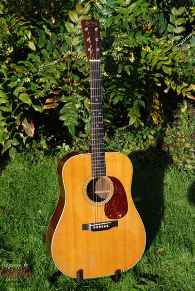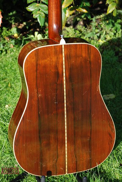 Here is another great early 50's Martin D-28. In excellent condition with great figured rosewood. It is crack free and with very little playwear to speak of. This is a very rare year to find on the market, for what reason I'm not sure but they don't often turn up. This one is superb and runs along with the big dogs. Powerful, loud and balanced, it plays very well and feels great with a chunky radius to the neck and good action. Lovely brick red brazilian usually found in the war era bone D-28's. Every time I pick up this old Martin I wonder how they did it !! The consistency in this era can't be found in any other brand of guitar and such great instruments they are. Yalza !!