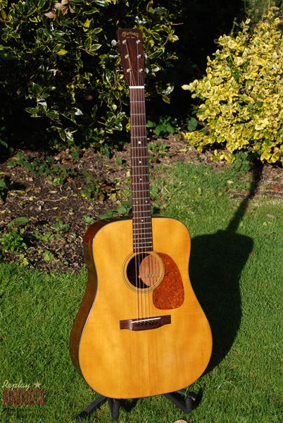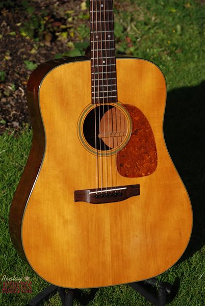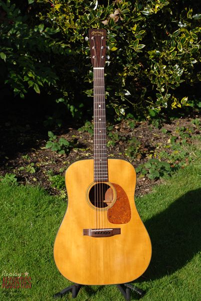 Sweet, classic 50's D-18 with the butterscotch pickguard, solid mahogany rims and back with a solid sitka spruce top. In excellent, all original condition excluding a second generation set of Klusons in the old holes..... with a voice that is crisp, clear and that possesses great character. The Martin D-18 of this period blows away the Gibson J-45/50 of this and earlier eras and are much more sophisticated and articulate. A real classic dreadnought from Martin.