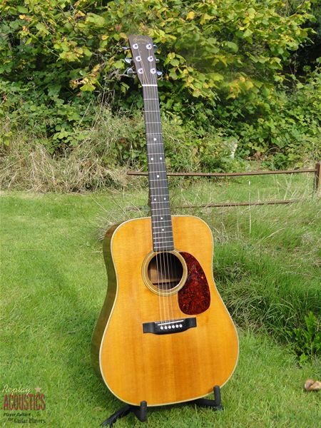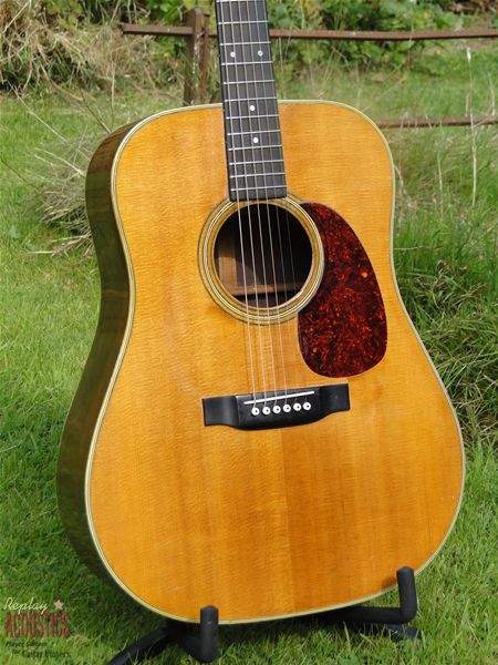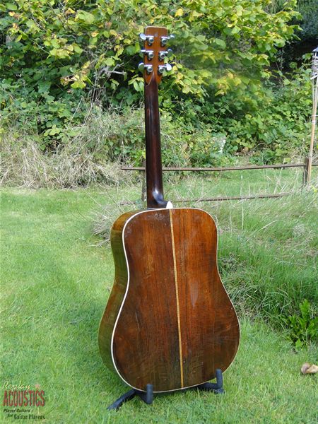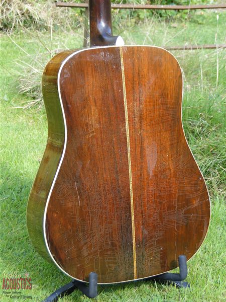 A well played brazilian D-28 from Martin with lovely solid brazilian rosewood rims and back with a solid sitka spruce top, ebony board and bridge and Grover tuners. She's been played a ton and shows lots of playwear with a few minor cracks but what a lovely, clear and warm voice with good sustain and projection. It's had a light overspray and some touch up on the back of the neck from capo damage but it's all good to go. The early 60's examples of this model tend to have a very clear tone and are not bass heavy like some of the later examples. Good even balance and with a new neck set and set up......just a sweet scruffy example of this venareable workhorse from Martin.