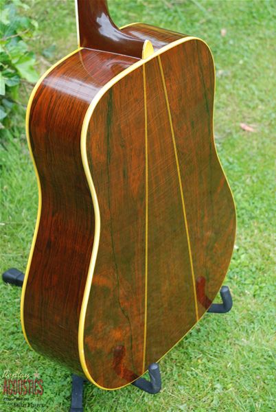 This example has exceptional AAA brazilian rosewood rims and back with a nicely grained solid sitka spruce top. It has an incredibly even and balanced voice with great playability and a super look. Great clarity and separtaion in the voice with big but balanced bottom end.......toffee coloured bindings and rich patination to the top and body. Just a really wonderful and great sounding Martin in excellent condition.