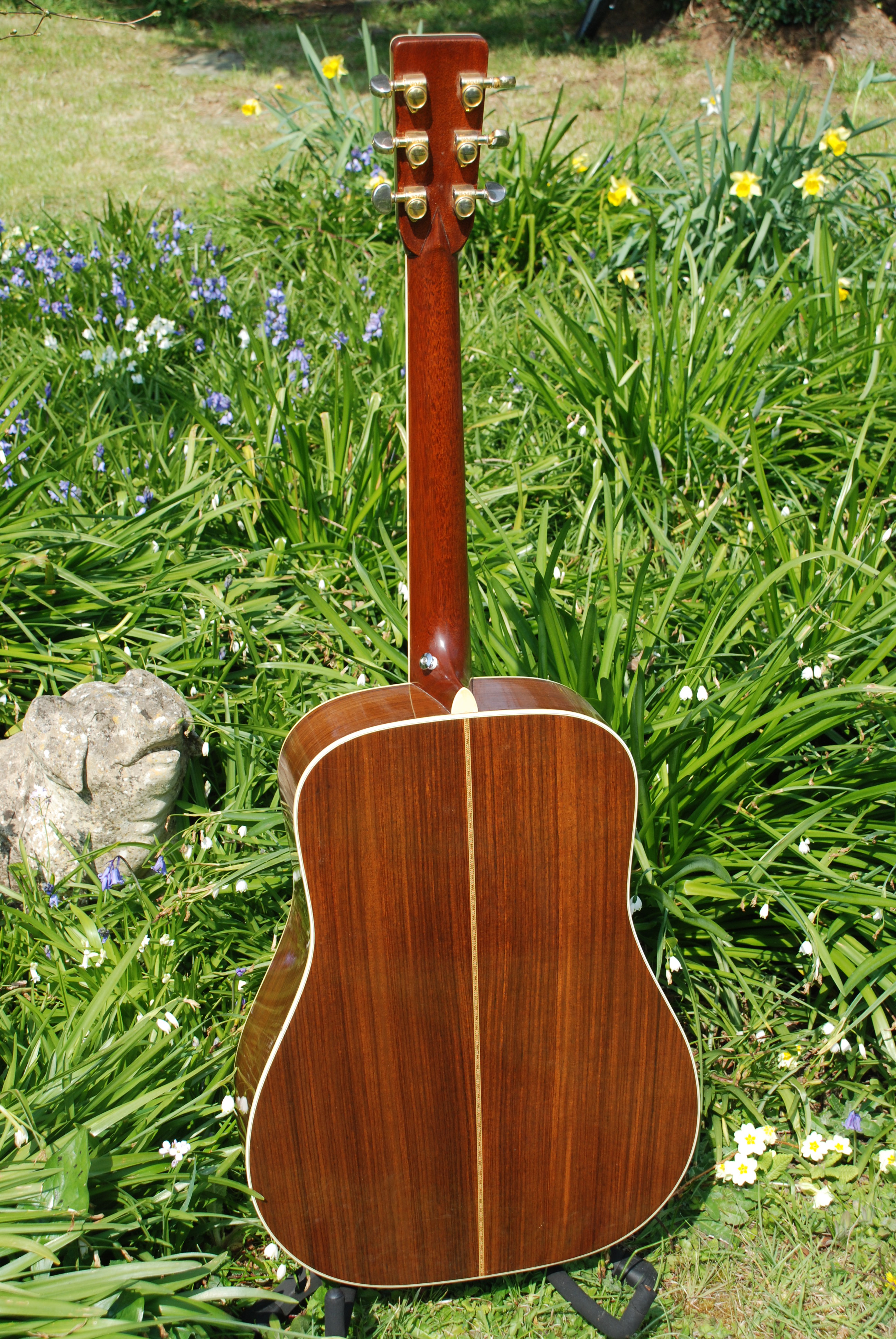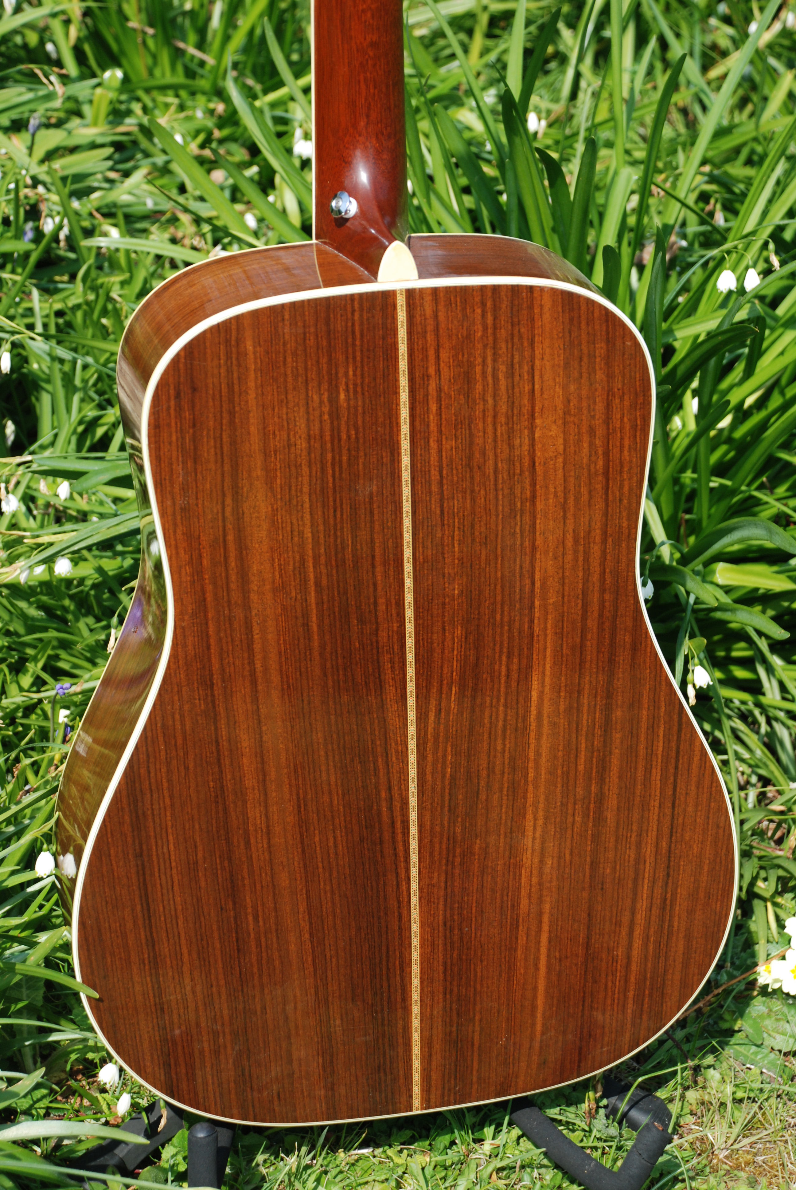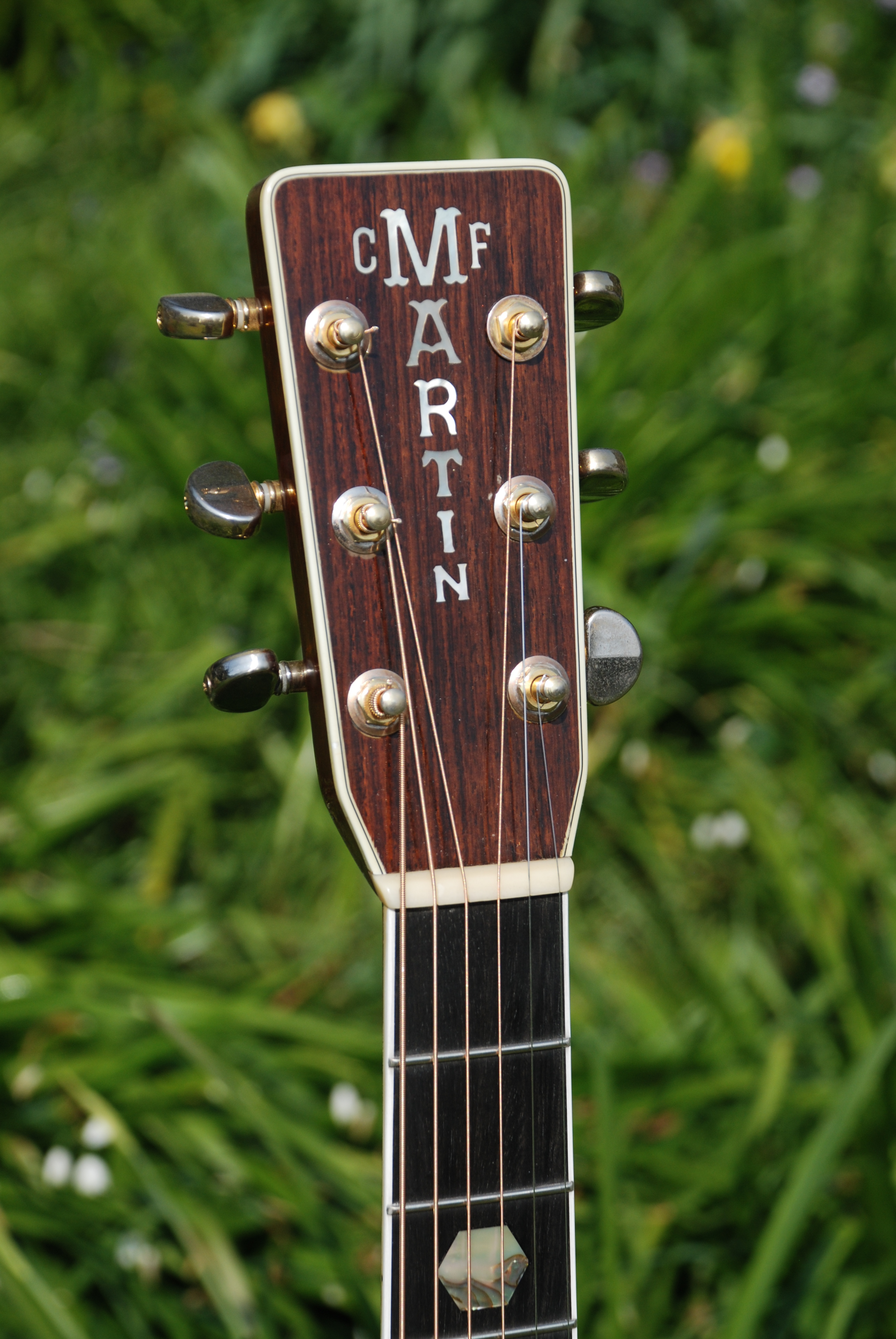 A classic example of this model in lovely played condition. This is one of the few models made by Martin that I buy post-1969. Firstly, they weren't available before that but more accurately, they are classic examples of the 40 series Martin dreadnought. The 40 series has always appealed to me because of it's clearly unique voicing. The 41's and 45's of this era sound very similiar with a crisp clear tenor and a measure of control that gives the artist freedom to express without worrying about heady harmonics or endless sustain. They record effortlessly and provide a bit of sophistication without being blingy. A lovely machine from all accounts.