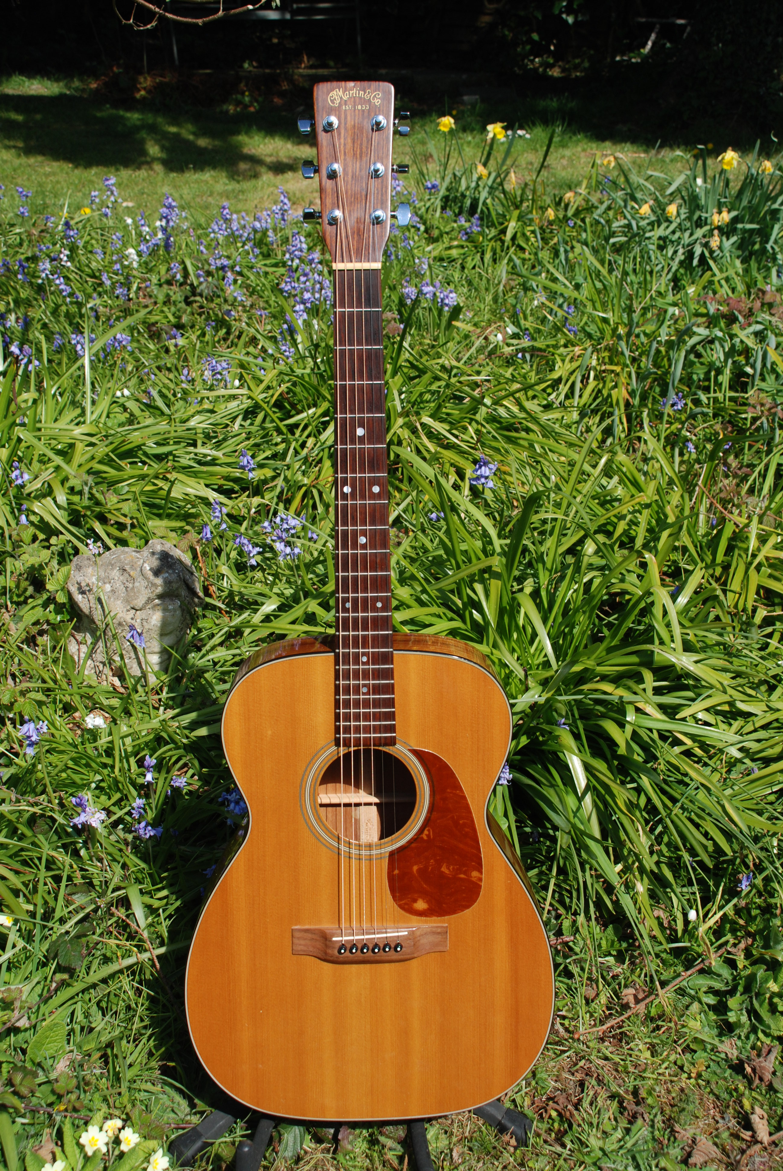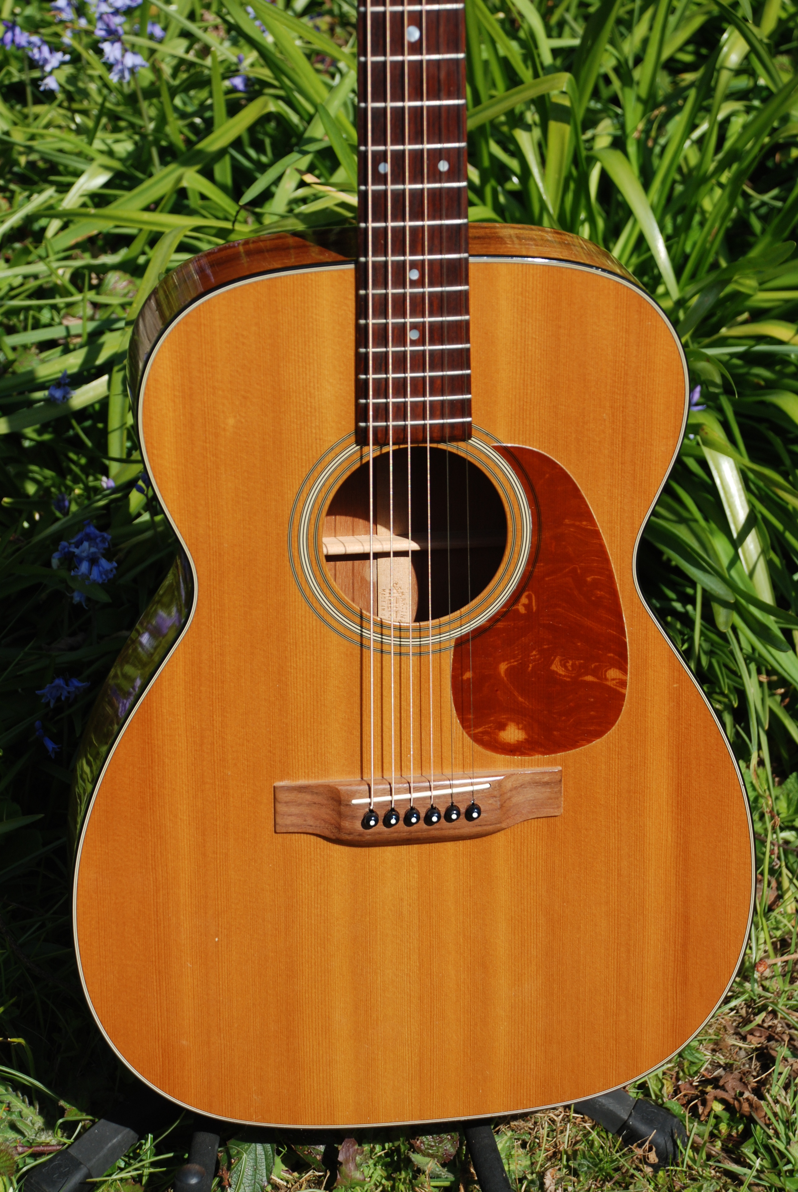 This is obviously a first year model and its crisp and loud and has a tremendous amount of resonance and sustain. Classic Martin all around. The range is even and distinct with a nice very supportive bottom end. It plays extremely well with a low saddle and so, to keep the price where it is, we haven't neck set it as it doesn't need it.