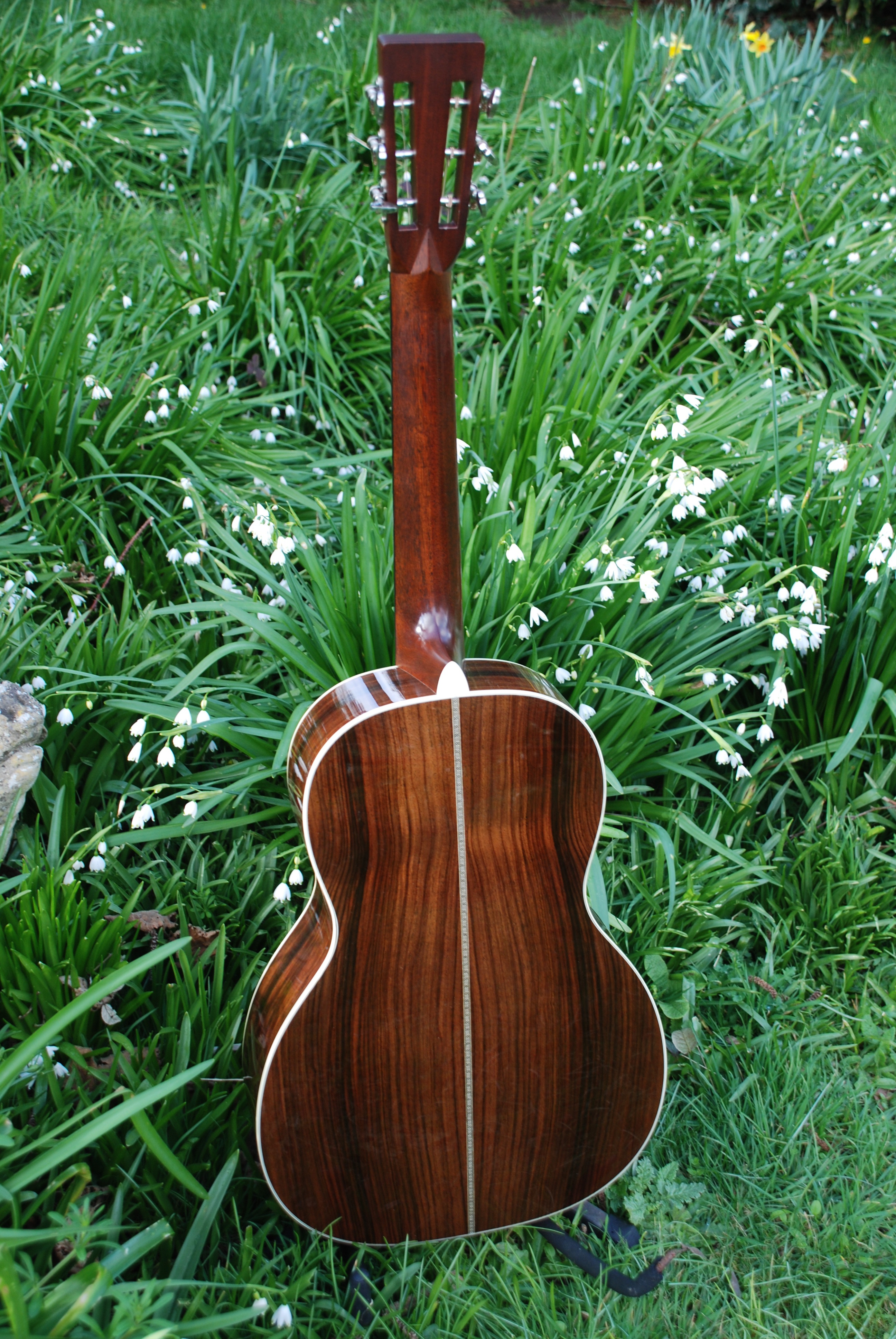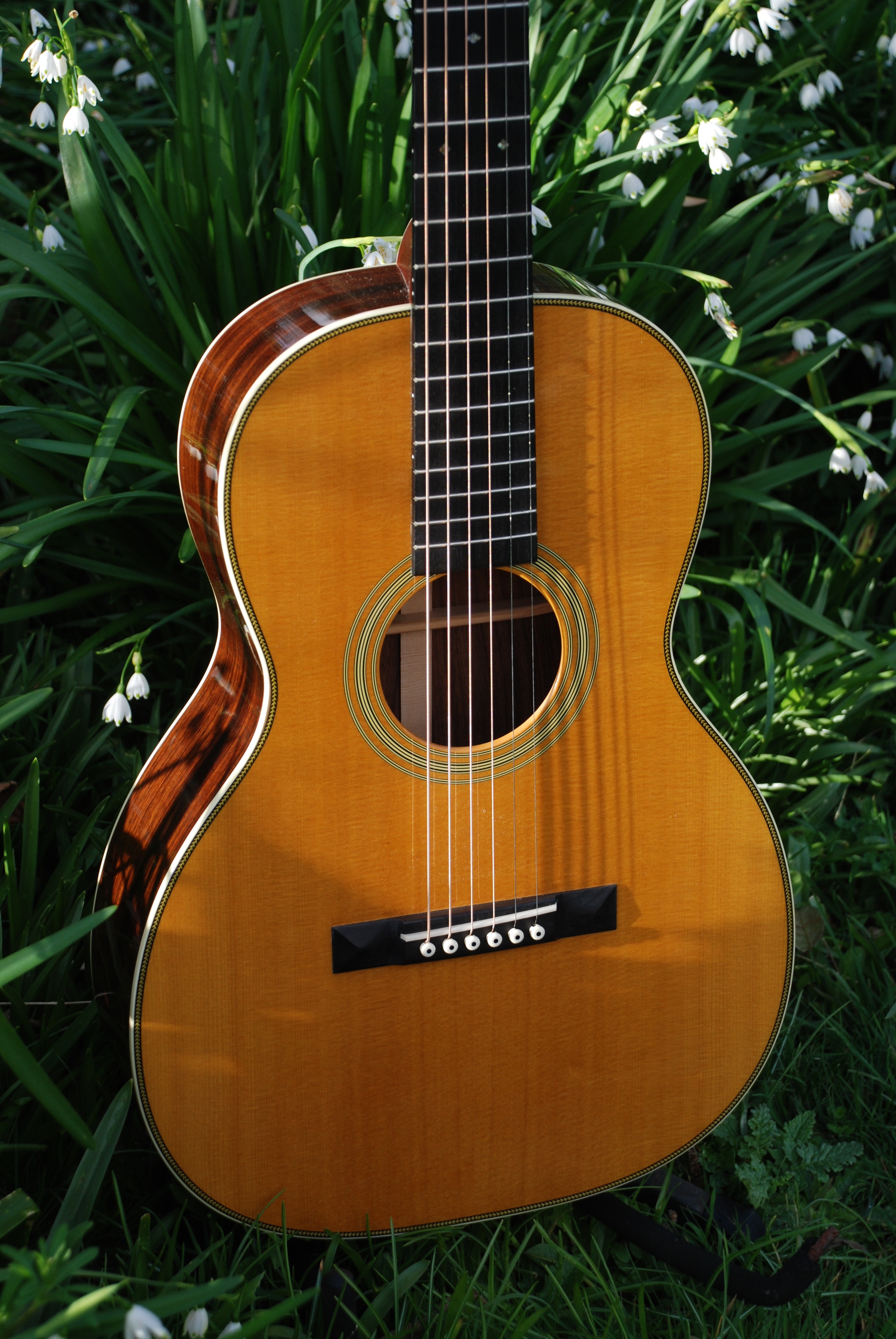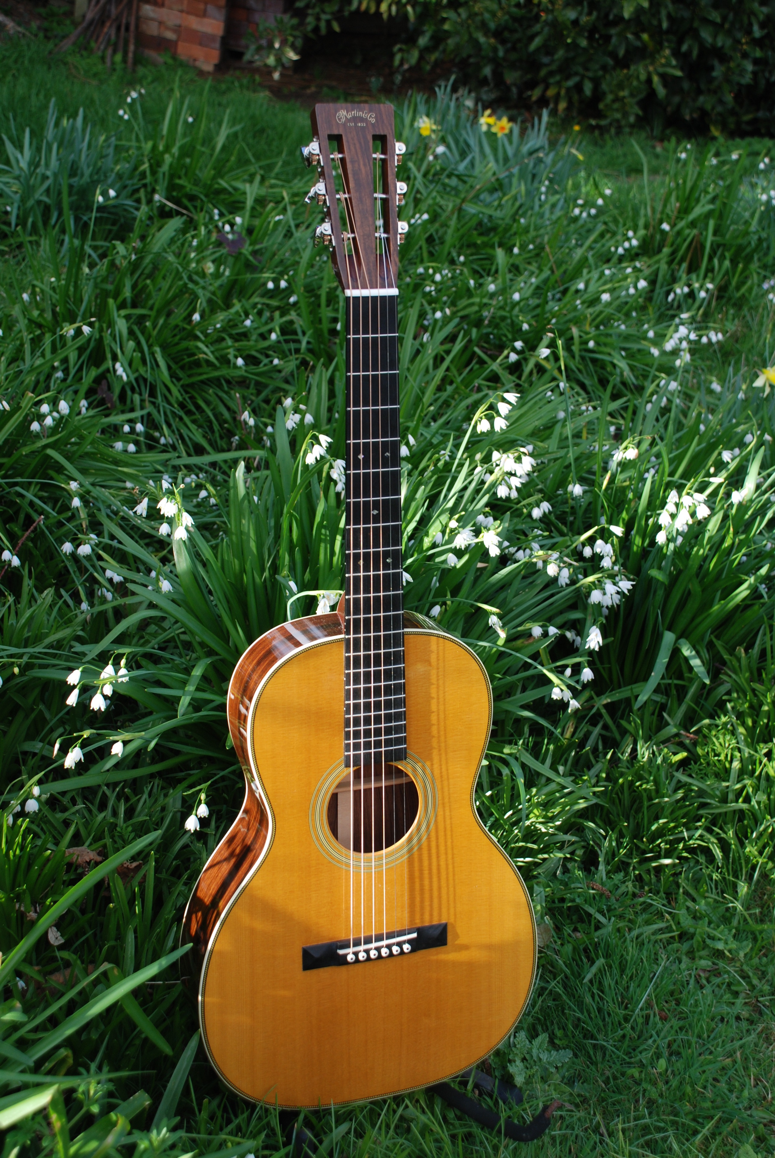 I rarely take in modern guitar of any make but this one is just a great representation of how good Martin has become in it's modern era. Fully scalloped forward shifted bracing, 12 fret with slothead arrangement and exceptionallhy grained Indian rosewood and a Sitka spruce top. Herringbone bindings and a pyramid bridge fill out the vintage appointments and it's sound is simply explosive. It's in mint condition and comes with it's original case.