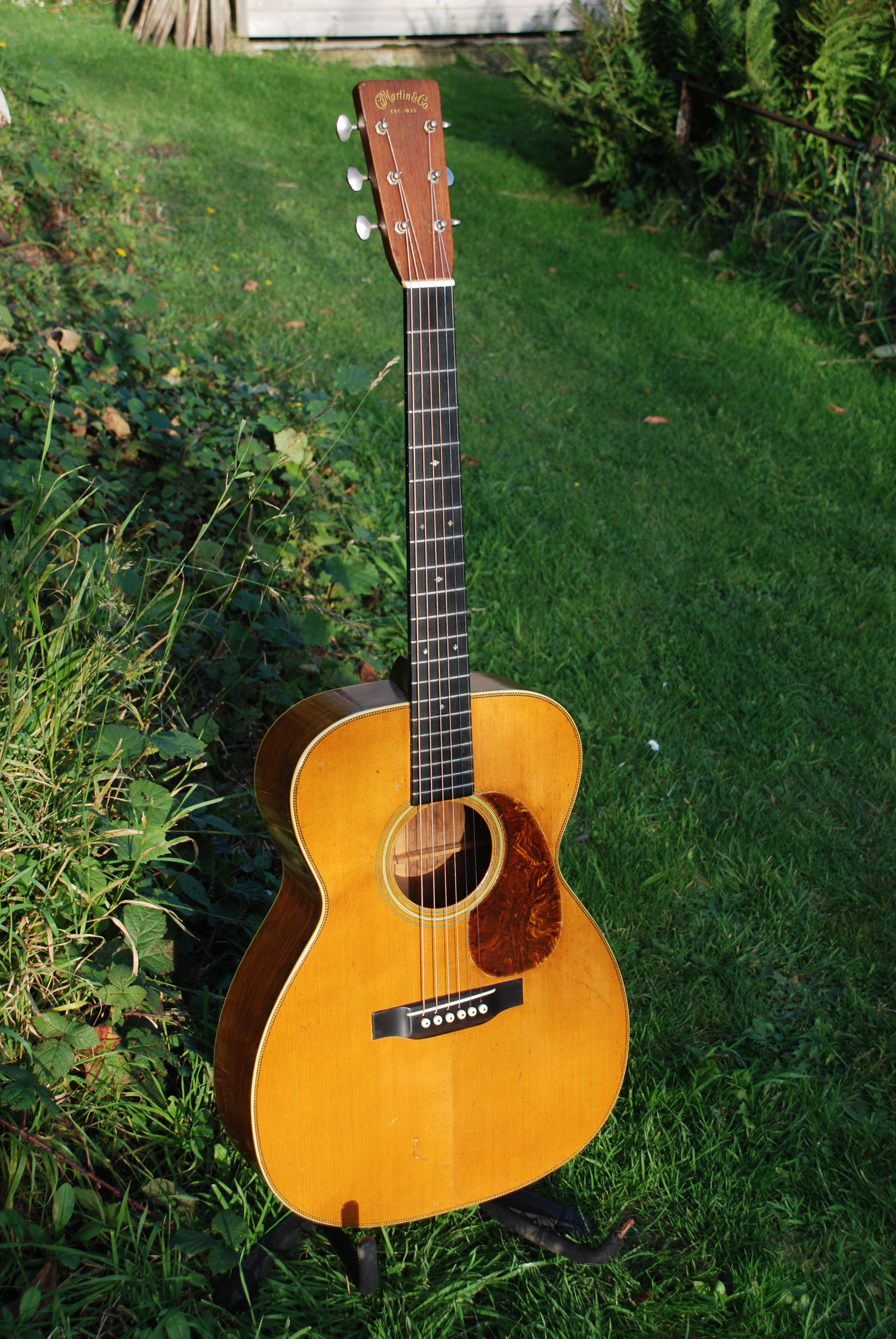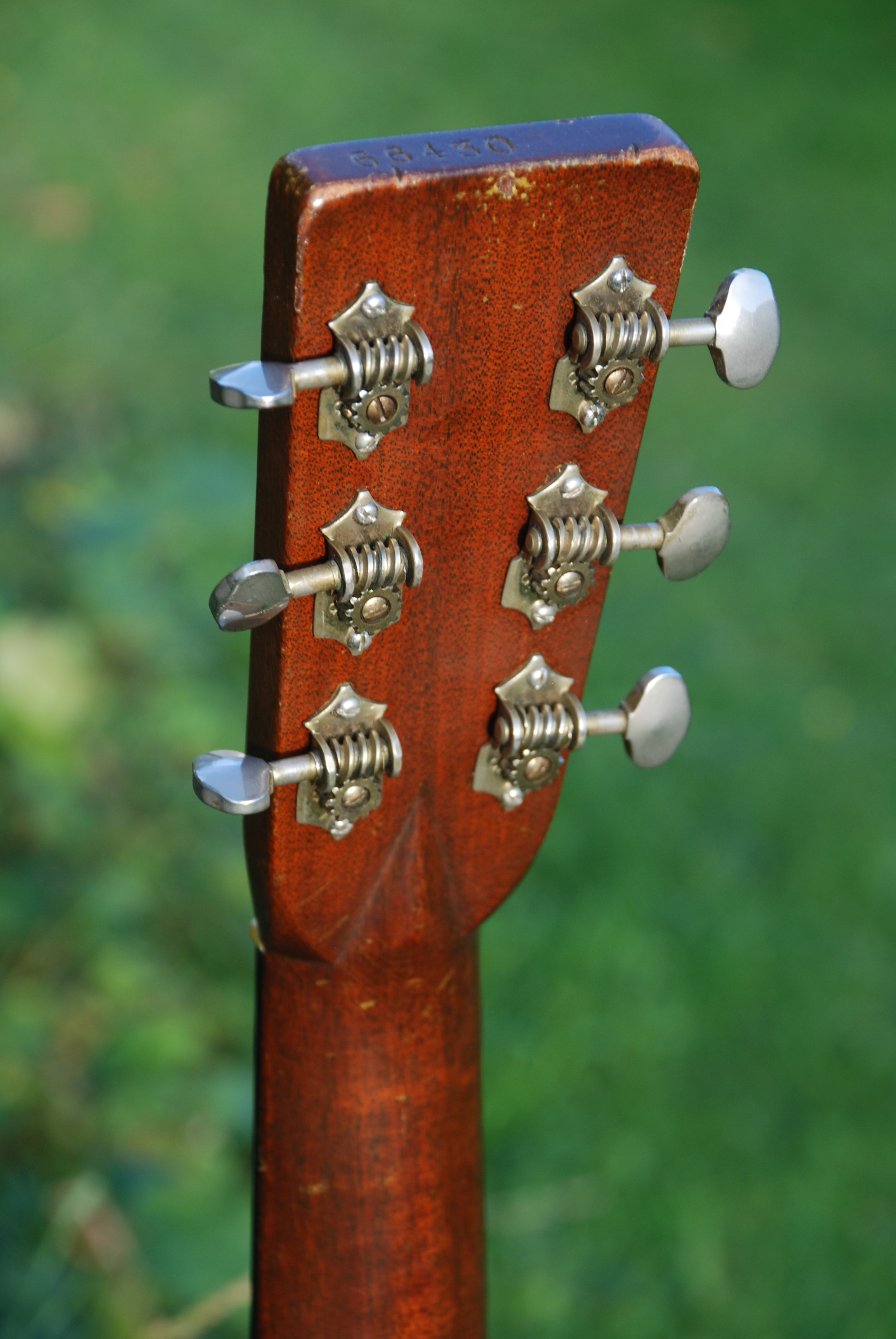 113 built in 1937  This is the most prized period of Martin guitars and to find a 30's bone 000-28 is like finding nirvana.    Pre-war forward shifted bracing, all original and crack free excluding the ubiquitous "B" string crack.  The sound:  Holy Grail pre-war forward shifted magnificence with no comparable instrument out there.   Provenance:  Gryphon Strings,1983 and includes their hang tag.  There is as light overspray to the top in worn areas, otherwise original finish and the rest is untouched.   I don't know what more to say about this machine without getting stupidly verbose.  It's just beyond words.
